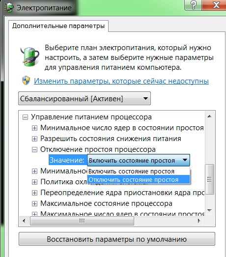 если нет такого,или почитай тут ближе к середине страницы. или ризиновый профиль питания установи.только на 7 он неработает или в биосе все энергосберегайки отключи. c1-c3-c6 кажись. еще есть такая утилитка