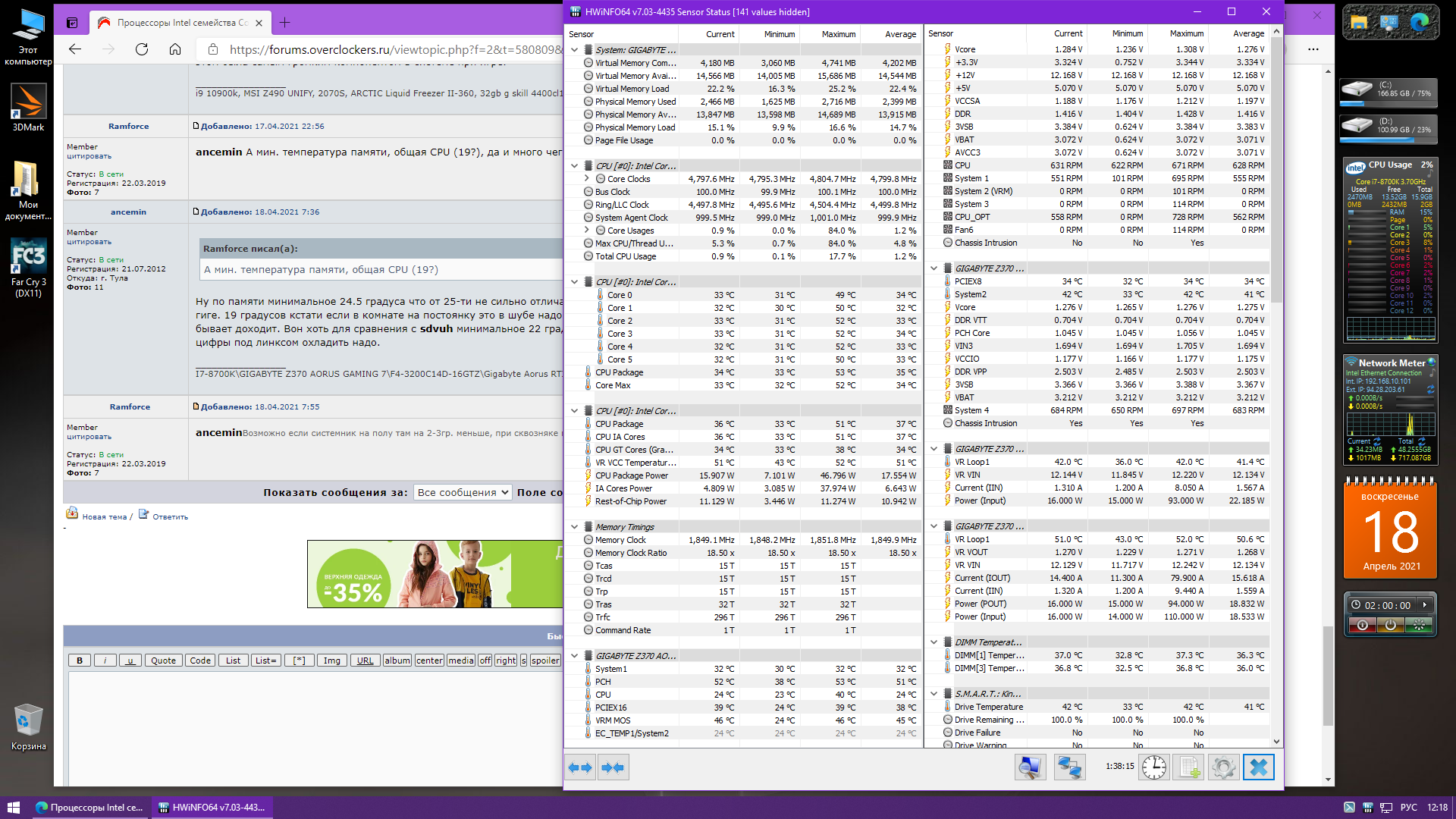 А мин. температура памяти, общая CPU (19?)