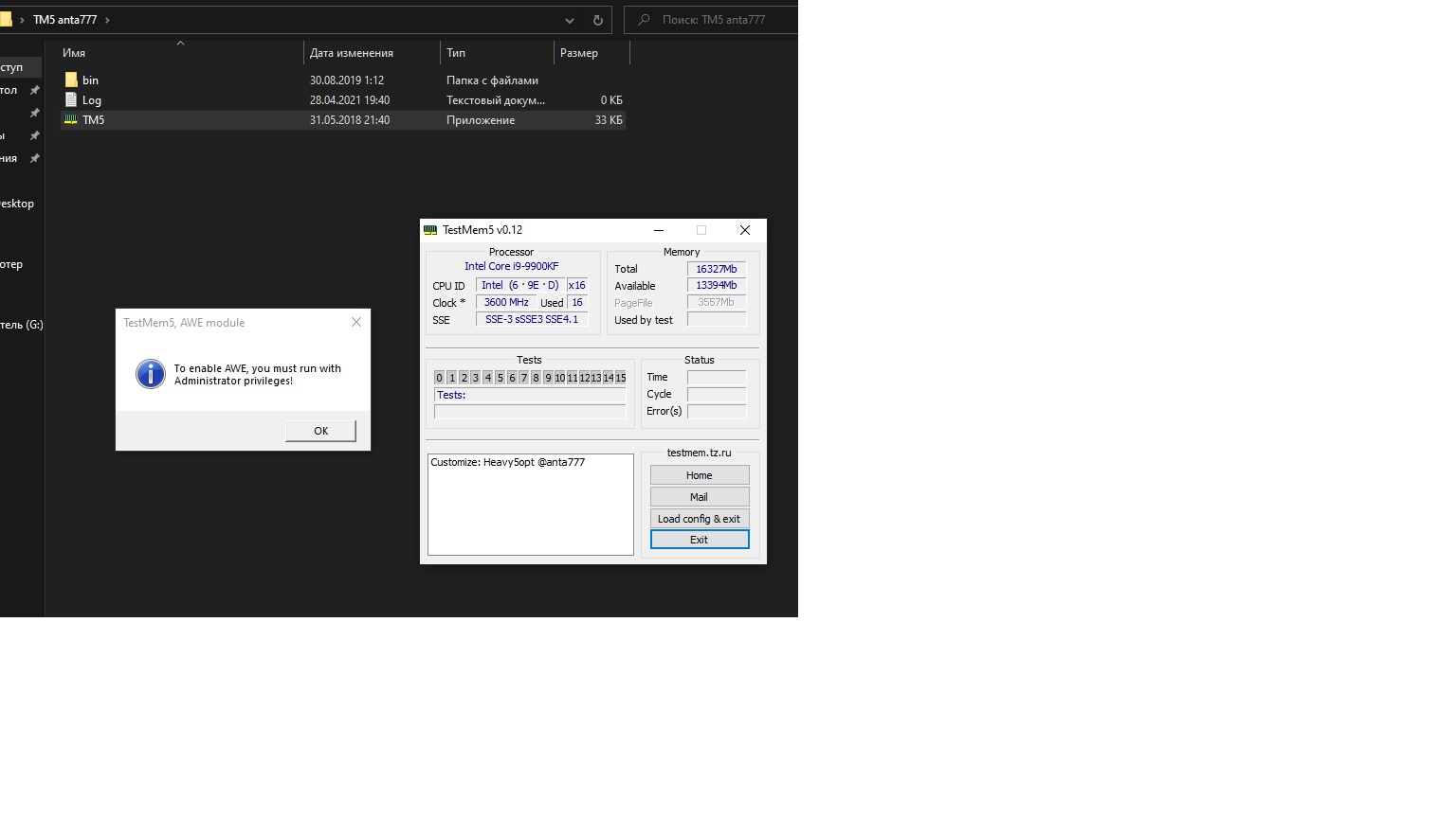 Скачал вот с шапки темы, запускаю от администратора, табличка делает мозг и не нашёл где профиль менять. Но даже, если разобраться с запуском и профилем, то нужно сначала настройки для памяти выставить.