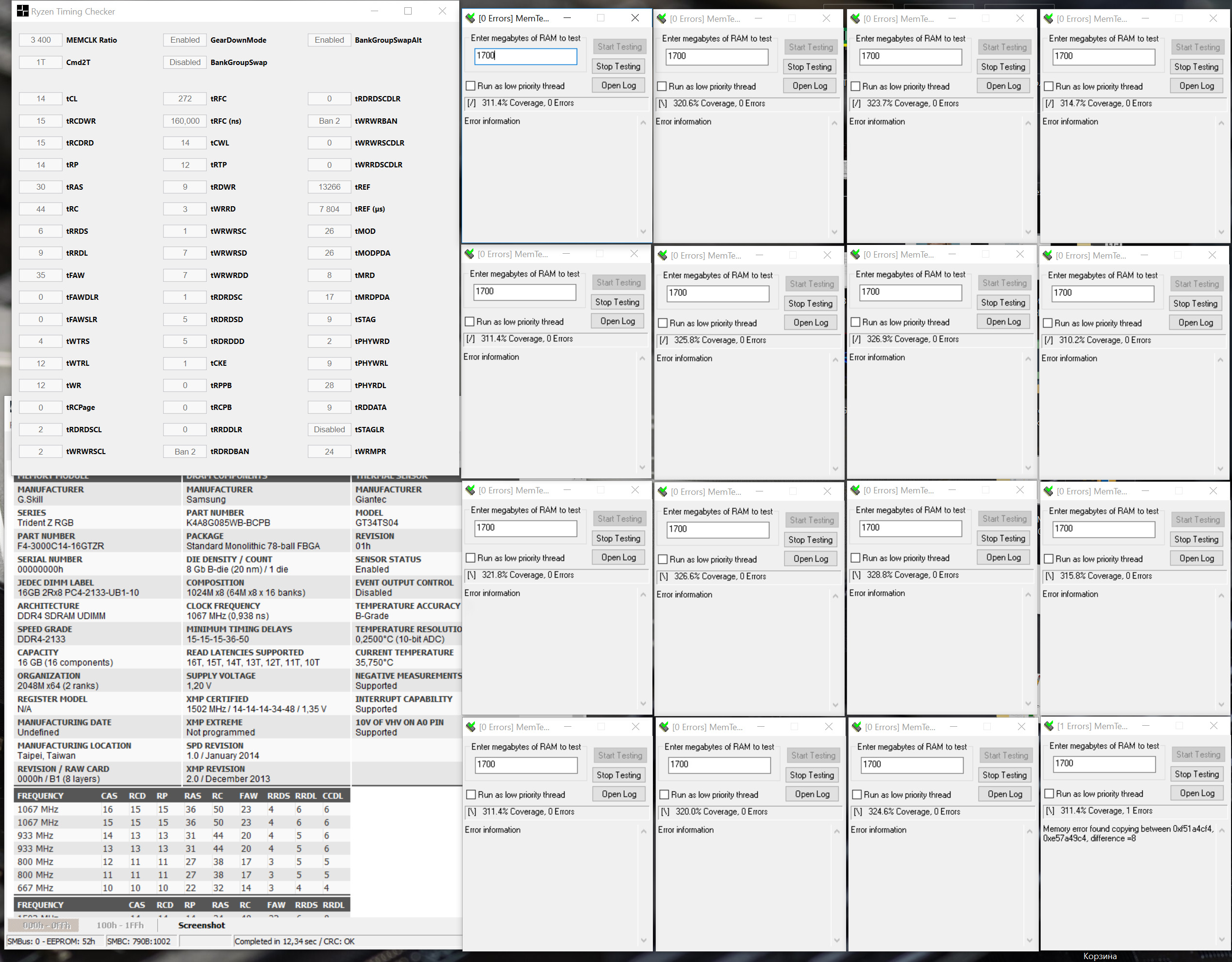 Выставил 3000мгц, первые 2 теста на 40% 1 ошибка вылетала, выставил CadBus 30 30 40 60, SoC с 1.1 опустил до 1.025 на памяти оставил 1.430, в 16 окон на 144% 1 ошибка вылетела это как критично или же норм ?, я тайминги менять не хочу 14 16 16 16 34 48 щас стоят, http://prntscr.com/iupzqg У меня щас RZQ 4 3 1, ими есть смысл игратся для повышения стабильности ? Кстати окно до 90% было открытое ПК рядом стоит, может нагрелась ?, у меня так то сверху над ОЗУ на 120 стоит вентиль