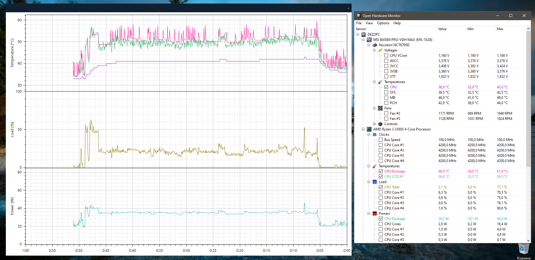 Open Hardware Monitor записывает данные постоянно, а не только когда открыто окно и эти данные в любом сочетании и масштабе можно вывести на одно окно.