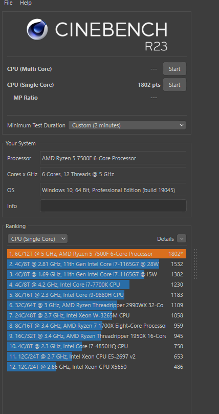во вторых речь идёт про 7500f и 12400, у которых частота 5 ГГц плюс минус по ядрам