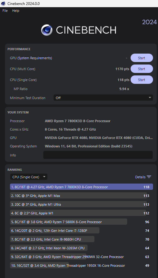 BattleBorg Значит по IPC Zen4 проигрывает Alder Lake в CB23 (он почти не чувствителен к памяти, но реагирует на фоновую нагрузку в ОС, потому что "плотно" грузит ядра). Жаль что не показан результат в однопотоке (и соответственно эффективность многопотока). Можно еще сравнить IPC в свежем CB24, там расклад может поменяться. Но попугаи только вечером смогу скинуть.