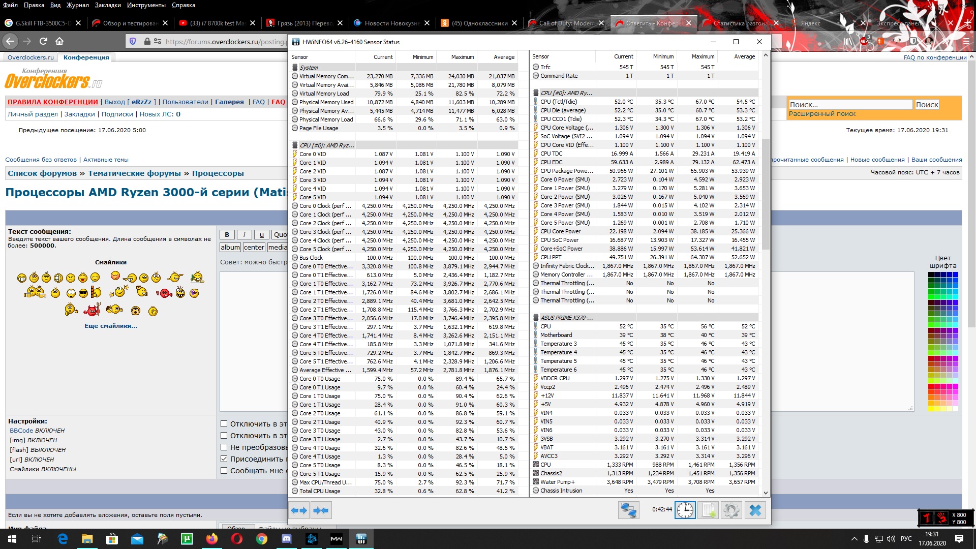 Добавлено спустя 5 минут 4 секунды: Выставил напряжение +0.2 offset . Множитель 42.5. В настройках плана питания выставил снижение до 40% , комп стоял минут 20 в покое,потом погонял минут 40 в COD MW2019, наряжение и частота не скидывается,как это было на R5 1600