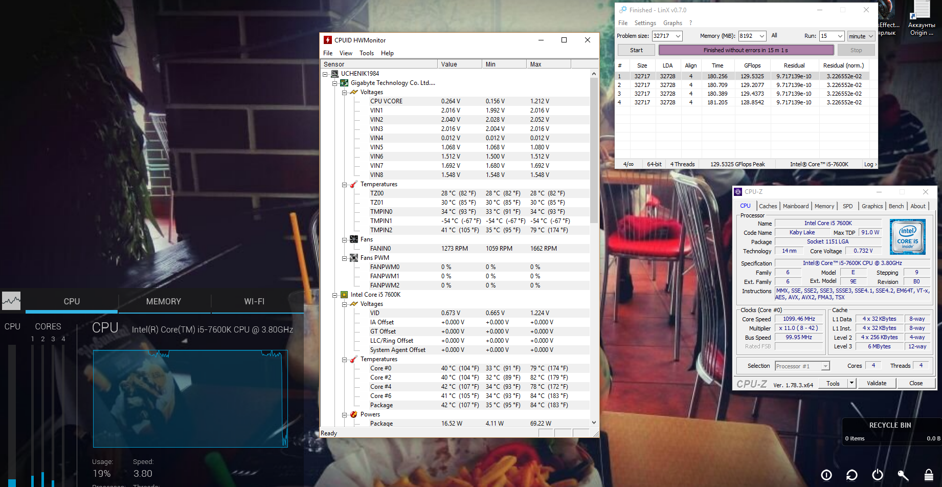 День сегодня крутил напругу на своём l5-7600k. И появилось пару вопросов. Если не сложно помогите. Первое: начинал стартовать с 0.95, сохранил изменения и получил после перезагрузки вот такое сообщение от биоса #77 Увеличить Второе: после напругу сбросило на дэфолт. Я поднял на 0.97 и перезагрузил, вошёл в биос дабы посмотреть... Но через секунд 10 биос завис. Пробовал перегрузиться несколько раз, но всеровно зависало в биосе, при этом винда не загружалась. Вытащил шнур из БП, 3 минуты отдохнул, включил и на всякий случай руками загрузил оптимальные настройки. После поставил 1.1 и прогнал через Linx на 15 минут. Тэст прошел нормально, без ошибок. В простое 38С а в нагрузке 70С. Если поднимаю напряжение, то в простое температура падает, но в тесте с нагрузкой поднисается. Я хотел добиться максимально низкой температуры (на своей бюджетной башне, кулер 10см) и минимального шума. В идеале хотел получить 30С в простое и 60-65С в нагрузке, чего собственно не удалось. Хотя слышал что люди добивались такого результата даже на штатном кулерре (учитывая тот факт, что проц достаточно холодный, не раз читал в отзывах). Могу ли я грешить на термопасту (кпт-8 вроде, если правильно пишу) или на своё неумение её наносить, ибо наносил сам? ЗЫ. Раньше юзал l5-3330. Тоже наносил пасту самостоятельно и тоже в простое имел 40С. Возможно не дано мне качественно нанести пасту на проц?(
