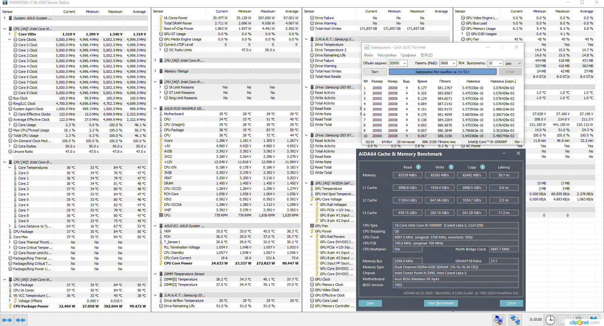 Вообще почти любой косяк так или иначе проявляется в линксе. Недостаток напряжения питания процессора и контроллера памяти. Даже ошибки памяти и то проявляются, как оказалось. Это я к тому, что истории про нормальность и даже обязательность рандомных невязок в линксе рассказывайте кому-нибудь другому. Я понимаю, что побороть их бывает очень сложно. Я вроде понимал, что и как и то кучу времени на это потратил. Но когда они есть, это ненормально и обязательно проявится как-нибудь ещё. Я повторюсь - в реальной жизни мне линкс не нужен от слова вообще. Но как инструмент настройки и проверки лично для меня он незаменим. Т.е. погонял по-быстрому и успокоился, если всё нормально.