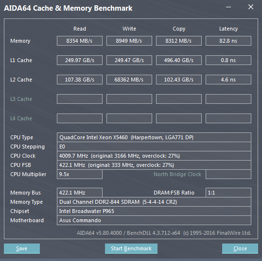 Разогнал E5450 на мамке Asus P5N-T deluxe до стабильных 3762Mhz, шина 418. Поставил охлаждение на SB и NB. После 420 никак не хочет стабильно работать. Не помогает увеличение напряжения. Думаю на этом все, можно оставить в покое эту мамку.