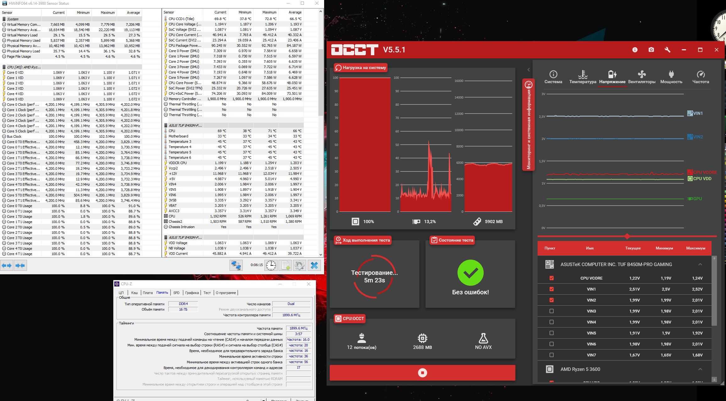 На процессоре 3500X специально сбросил разгон, перевел в стоковый режим, ошибка повторяется. Память работает в классическом разгоне 3800 16-20-16-38 при 1.39V, при этом memtest5 и другие программы не находят ошибок в памяти. Думаю дело в сильно высоком вольтаже или низком, вот значения напруги на памяти и soc:
