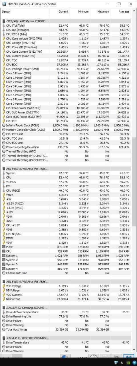 всем добрый вечер, у меня появился такой вот вопросец. Я счастливый обладатель материнки Asus TUF GAMING X570-PLUS wi-fi и проца 3700x. Собственно проблема заключалась изначально в том что в пике (пик длиться 1-2 секунды, потом спускается на 75 градусов, через время снова пик в 1-2 секунды, после скидуется температура до нормы и так частенько) температура проца поднимается до 85 градусов. Собственно моё решения (кроме покупки более лучшего охлада) это понижение вольтажа на проц и снижение макс. частоты. Через ryzen master подобрал себе оптимальный вариант в 4.2 частота на 1.25v на ядро. Проблема: решил я выставить в биосе частоту на проц 4200 и вольтаж на 1.25v чтобы каждый раз не запускать ryzen master. Выставил я две настройки (профиль XMP включён, у асуса в моём биосе он называется DOCP): 1. CPU Core Ratio: 42.00 (множитель который равняется 4200 частоте) 2. VDDR CPU Voltage: 1.25000 (режим manual) После перезагрузки захожу в биос смотрю что всё нормально: CPU Frequency 4200, Core voltage 1.24. Загружаю винду запускаю мониторинг, на материнке VCORE соответствует, а на проце макс. вольтаж на ядро 1.1v и при нагрузке только падает... Не пойму что не так.(биос обновил), причём когда через ryzen master применяю, всё стабильно и нормально, на каждое ядро идёт чётко 1.25 без снижения и т.д. . В начале я подумал что возможно это связанно с LLC(Load-Line Calibration) и пытался подобрать уровень (что бы кривая была прямой и вольтаж чётко держался на той отметке который я задал), но безуспешно, ощущение что LLC(Load-Line Calibration) вообще не работает. Что может быть не так ? (PBO даже ставил в disable, тоже не помогает)