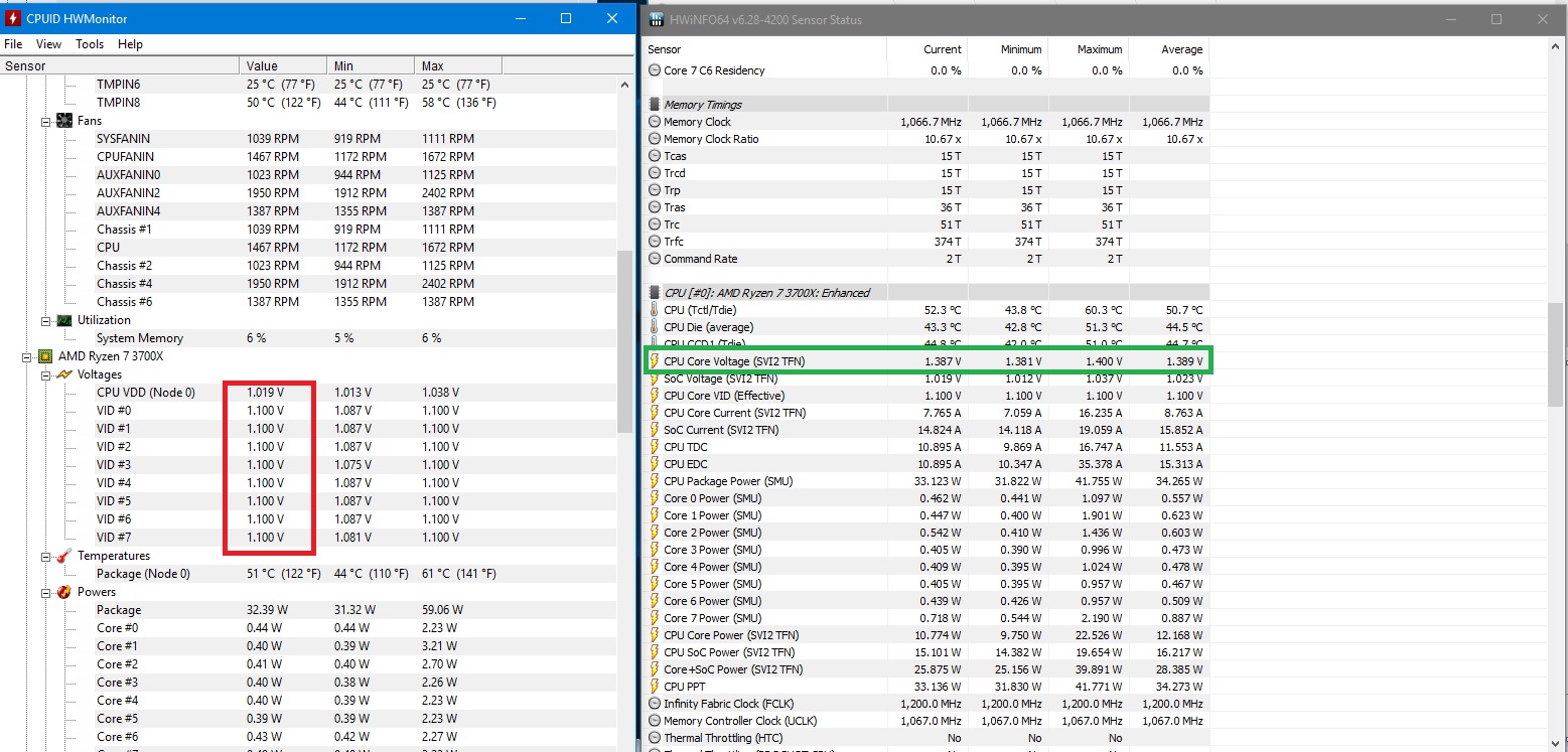 Скрин. Сейчас выставил только лок на частоту в 4200, вольтаж не выставлял и собственно vid автоматом залочился на 1.1 (отметил красным), так же отметил зелёным то на что действительно смотреть нужно, он же CPU Core voltage(если я правильно понял). Просто странно что VID Так лочится, в обычном режиме он практически аналогичен vcore