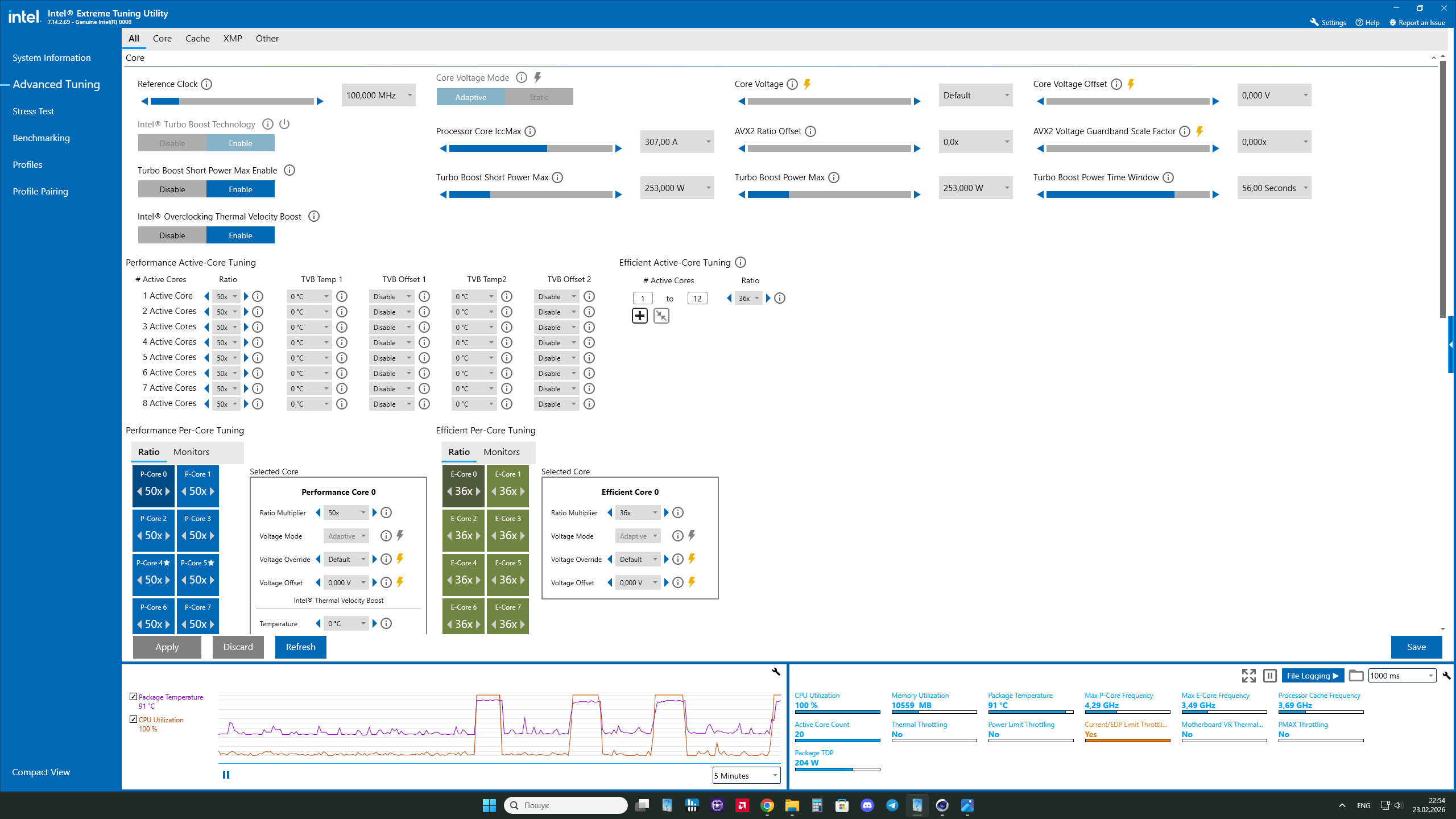 Помогите с побороть 13850 и мать asus b760.Как только в intel xtu изменчю значение на все ядра выше 4.2 сразу же тротлит current/Edp Limit Throlttling даже на робоче столе,неважно выставлен сток Биос или убраны все лимиты.Страдаю уже третий день и ничего не выходит.На одно ядро в Cpu-z все гуд ~860-890 ,а все ядра упираются в 12000 и частота P4.3-4.4 и E 3.4-3.6,потребление упирается в 160-180ват хотя установлено 253.В играх сначала все ок,но через несколько минут падает частота .Помогите плиз,я уже не знаю что делать