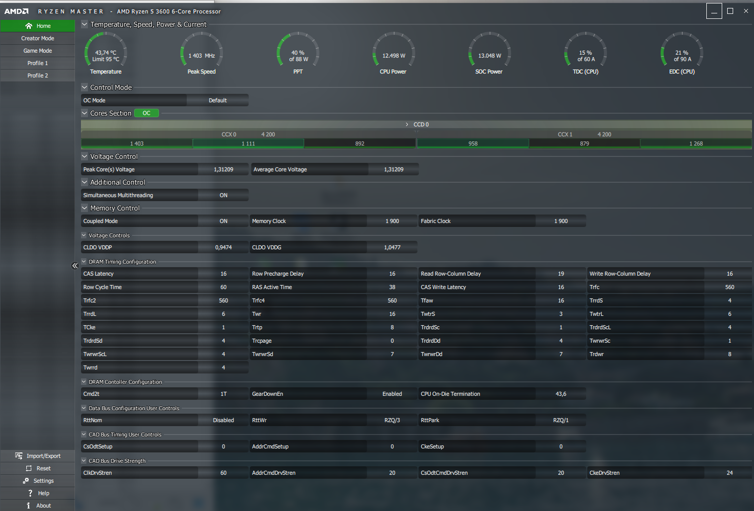 Доброго времени суток. Расскажу и о своей жизни процессора R5 3600)) А так же нуждаюсь в советах Почитал данную ветку немного, и немного расстроился.. Свой R5 3600 покупал с computeruniverse в декабре 2019, и судя по фото у него дата стоит 24 неделя 2019, примерно июнь-июль.. совсем старикан? Сказали мне в ветке с памятью, что проц плохо бустит.. Память разгонял по калькулятору до 3800 с некоторыми рекомендациями из данного форума (в разгоне памяти). Пока что всё стабильно работает.. Но интересно, с процом что-то сделать можно, или забить? Пробовал вариант, который фиксирует ему частоту в 4.2 вроде, через управлением электропитания в панели управления.. при этом напряжение не скачет, но я не играю целыми днями, и не нагружаю ничем, чтоб мне такая частота круглосуточно нужна была.. Немного напрягает, что у него такие скачки, и температура скачет.. но в играх температура более менее фиксируется, в районе 54 градусов, в зависимости от игры.. Тест аиды до 74-75 прогревал.. Но раз утверждают везде что это норма для данного проца, особо не заморачиваюсь.. (сейчас стоит AMD Ryzen High Perfomance) p.s. Вся сборка в подписи