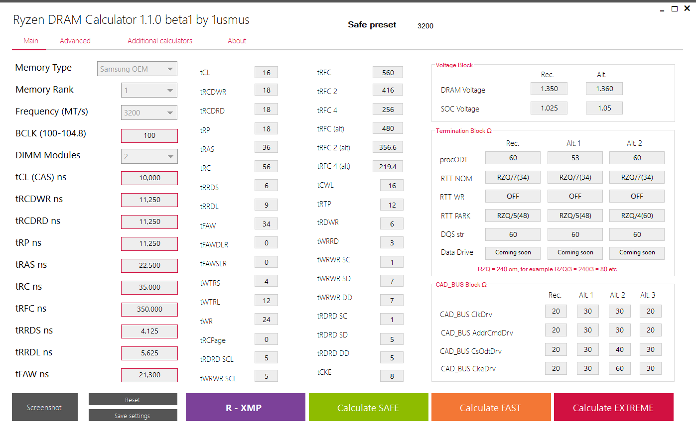 Они не выросли, кальк иногда глючит. Я замечал что он для одноранка иногда предлагает procODT 68 и т.п. явные несуразицы, так что если кальк несёт ахению, просто тыкай на reset и выбирай заново. На 3200 safe sams. OEM должно быть: