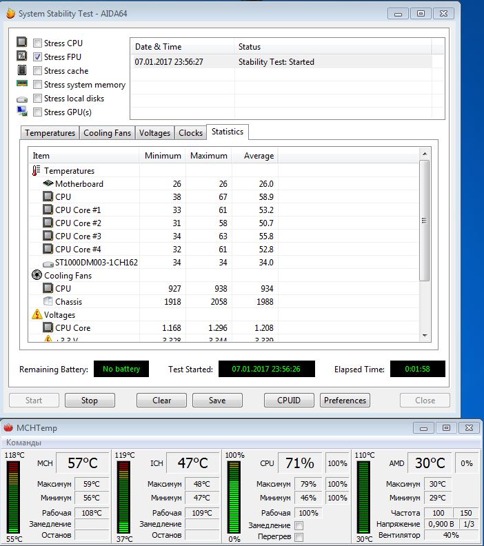 Stress FPU прошел. Температура сначала подскочила до 67 и дальше норм. До этого посдкакивала до 69 и ПК вырубался.