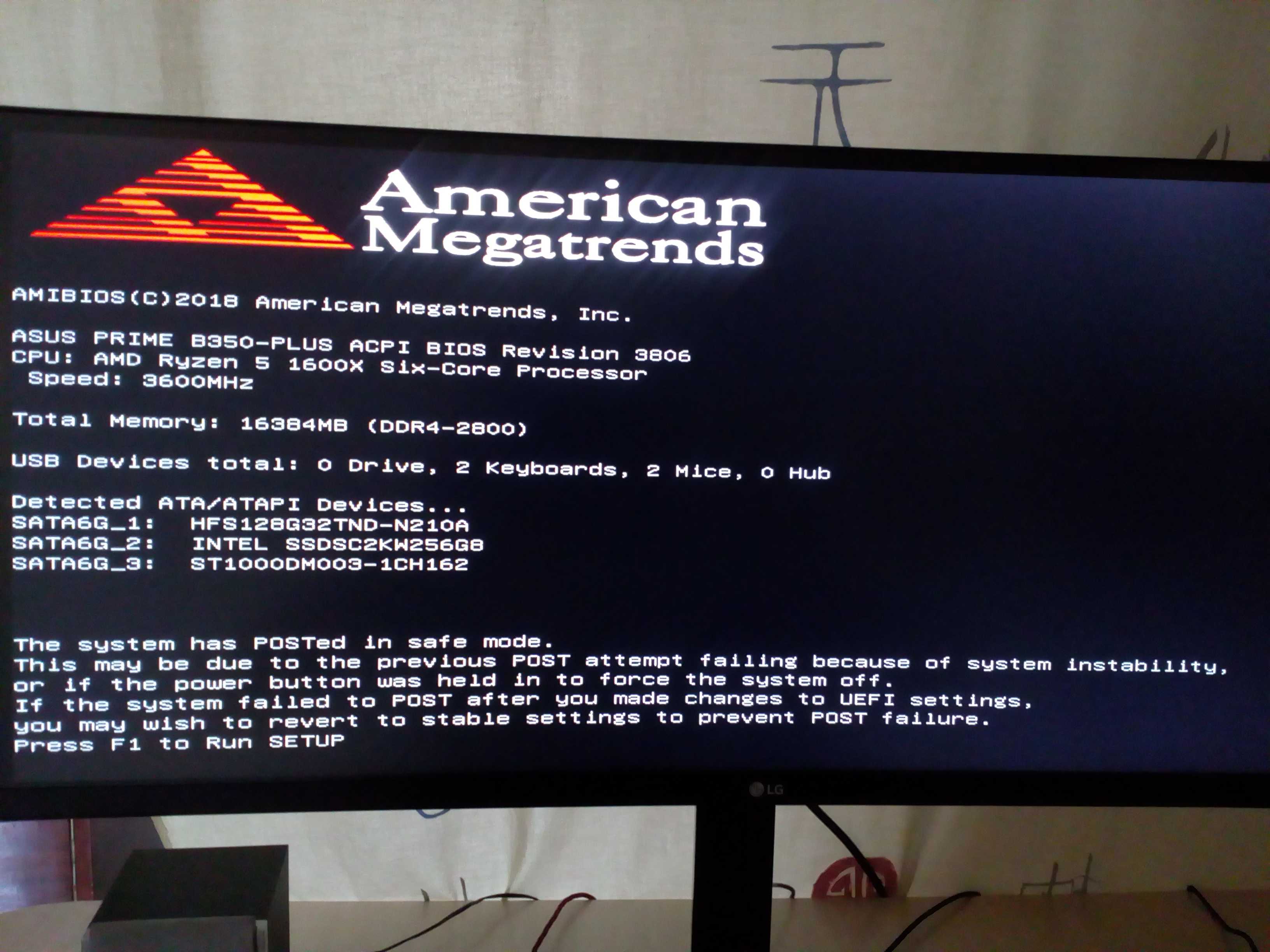 Он говорит , что в безопасном режиме (видимо в стоковом), поскольку система с текущими настройками нестабильна. Посему, мол, пройдите в биос да посмотрите что да как ... Нажмите Ф1 для в хода