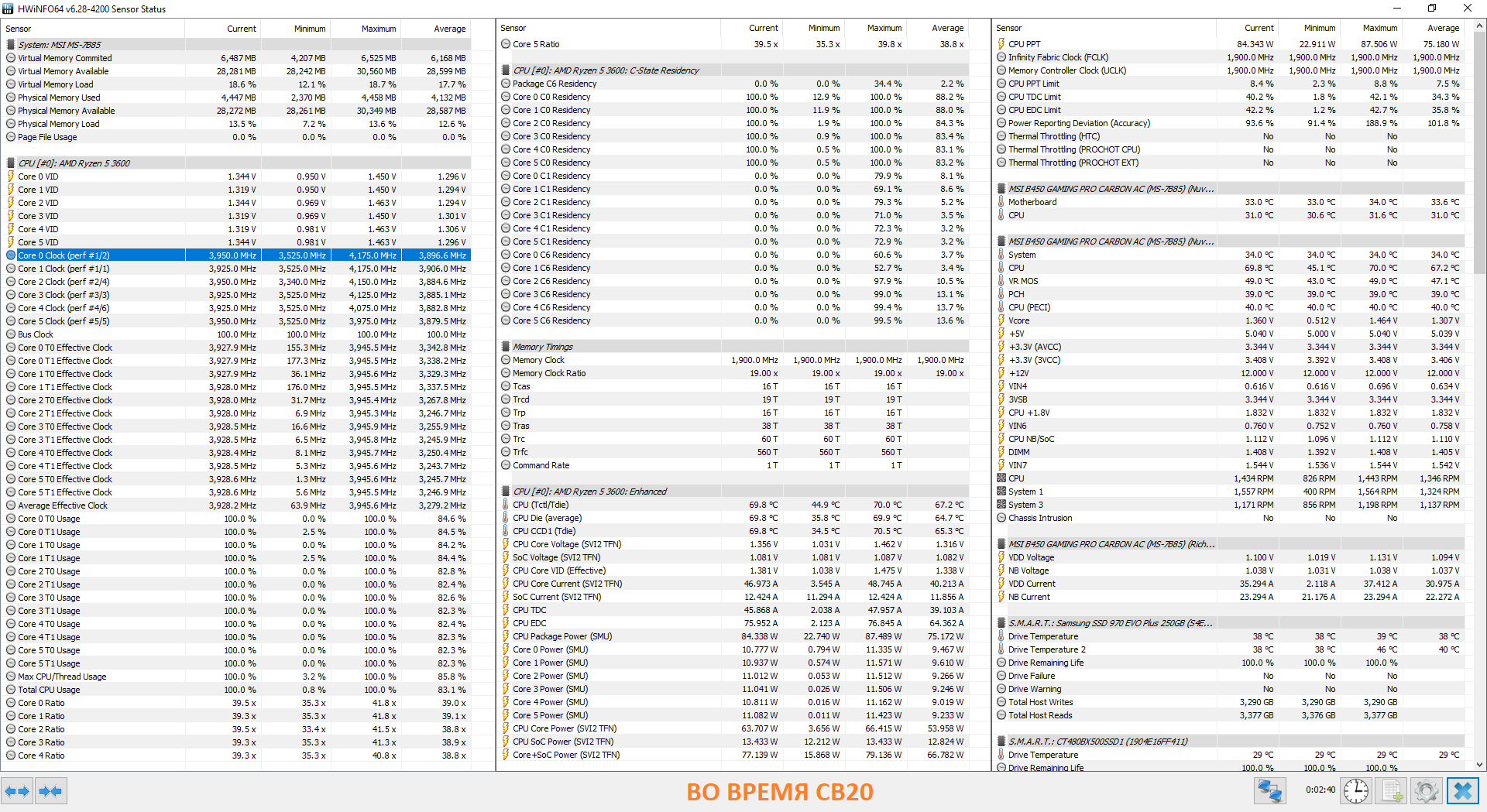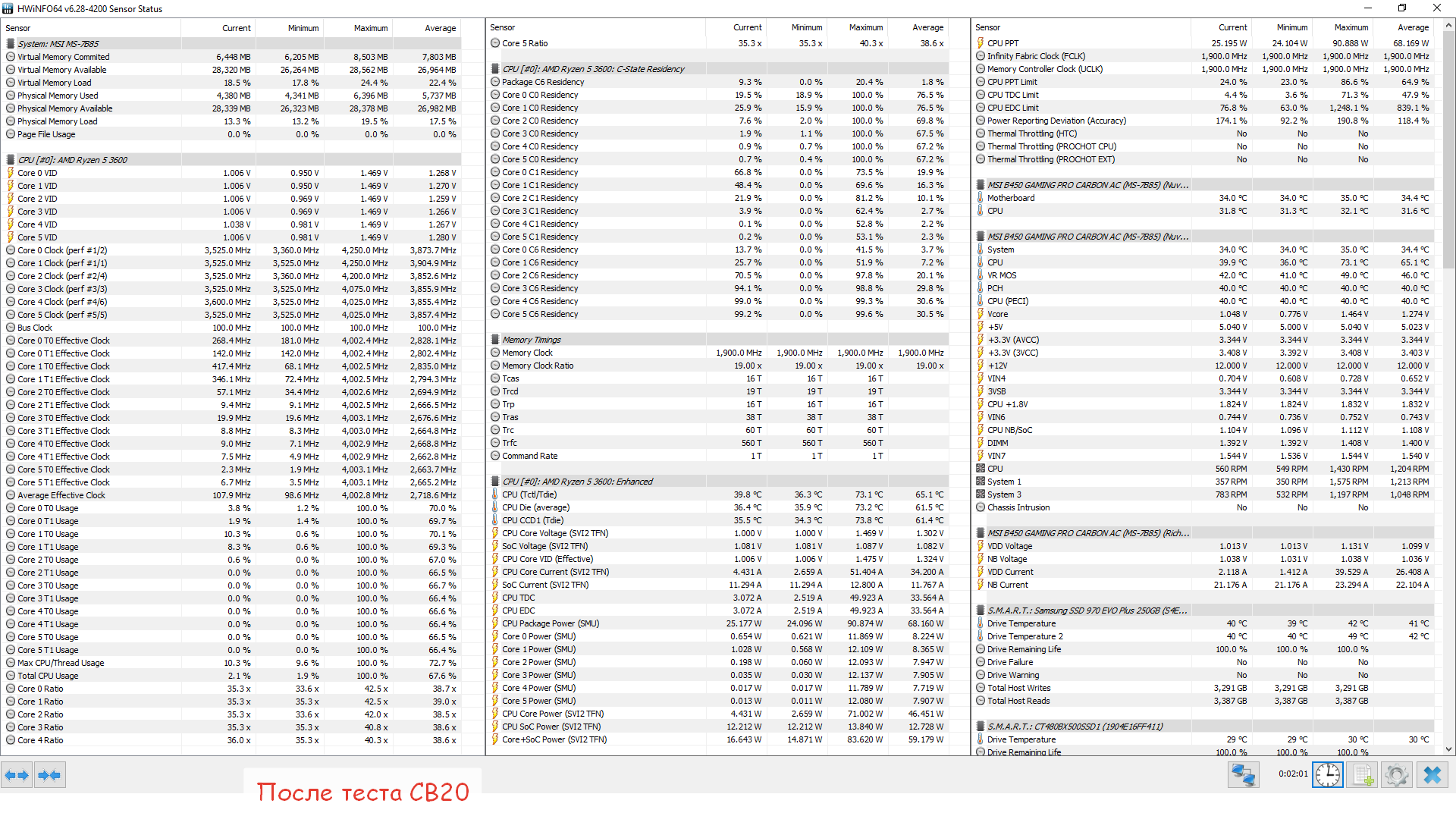 Доброго времени суток. Решил поиграться с настройками PBO, почитал статейки, не всё конечно понял.. ставил наугад практически. После чего провёл тест в CB20 и поиграл в метро исход РОВ: PPT 105 TDC 70 EDC 4 Sclar 2 Max CPU Boost Clock Override 200MHz Ну и используются настройки плана электропитания 1usmus: Global c-state control - on AMD Cool'n'Quiet - on PPC Adjustment - PState 0 Power Supply Idle Control - Low current idle CPPC - on CPPC Preferred Cores - on Результаты: