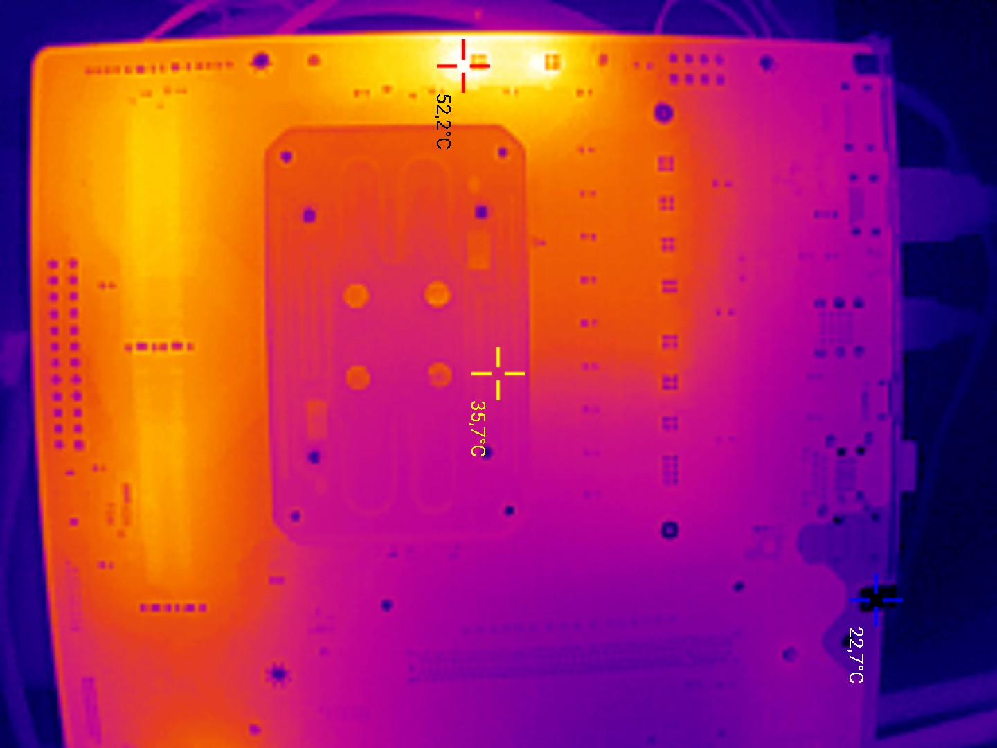 А у нас тут у двух обладателей 8700g mini материнки, где фазы сок отдельно не вынесены. И проверить нагрев сок, запустив нагрузку только на встройку проблема. И еще не понятно, как амд-шники решили вопрос совместимости, если встройка до сих пор сидит на сок. Куча ам5 плат с порезанным относительно ам4 сок, радиаторы на нем тоже далеко не везде. При 64 градусах радиатора там текстолит сзади +- 100 град. и это на dr mos, на обычных мосфетах будет еще хуже, а без радика вообще мрак. У меня soc две удвоенные фазы(8 мосфетов) без радиатора и при 40Вт потребления веги8/2400мгц в бублике нагревались до 70+ град и это на открытом стенде, пока радики не заколхозил. Если встройка в ам5 все же сидит на сок, то понятно, почему у него 2% кукурузы от ее разгона на 300мгц, просто 2х50А dr mos не вытягивают потребление и не дают ей выжрать больше. У остальных обзорщиков платы были с питаловом сок 2х60-70А dr mos. Короче, тему надо проверять и если SkatterBencher прогнал про встройку на фазах проца, то я чесслово не понимаю, о чем амд-шники думают, что эти процы покупать не будут? Закрыли бы тогда разгон встройки, что-ли + ограничили ей лимиты. 100Вт жора на сок это половине или больше плат приговор, даже если сок под радиатором.