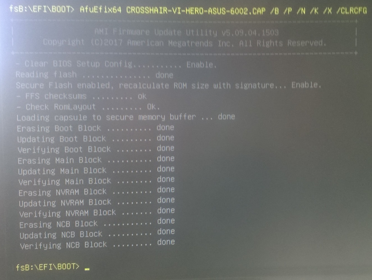 Сейчас поставил 6002 В BIOS: - сброс на оптимальные настройки; - через флешку в EFI; - AfuEfix64...