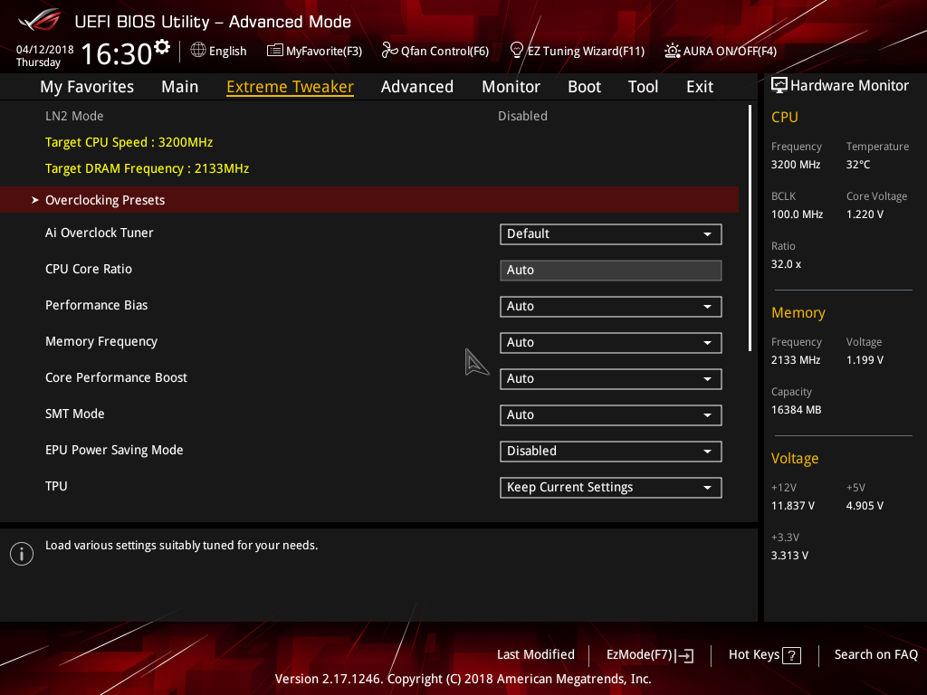 - Обычно поставляется в коробке с системой охлаждения Wraith Spire RGB (это круглая конструкция из целого куска алюминия с медной вставкой-испарительной камерой в основании и вентилятором с кольцом разноцветной подсветки, крепится к задней пластине разъёма AM4 четырьмя винтами). - Штатно имеет базовую частоту 3.0ГГц, частоту 3.2ГГц (технология Turbo Boost) при обычной многопоточной нагрузке (Blender n-cores render) и 3.75ГГц (технологии Precision Boost и XFR) при однопоточной нагрузке (Cinebench R15 single core). - Штатное напряжение питания 1.1875В. Может возрастать до 1.3В на отдельных ядрах во время работы Precision Boost и XFR. - Очень энергоэффективный, требования к СО (TDP) - всего 65W. Энергопотребление порядка 10Вт в простое и 85Вт в обычной многопоточной нагрузке (Blender n-cores render).