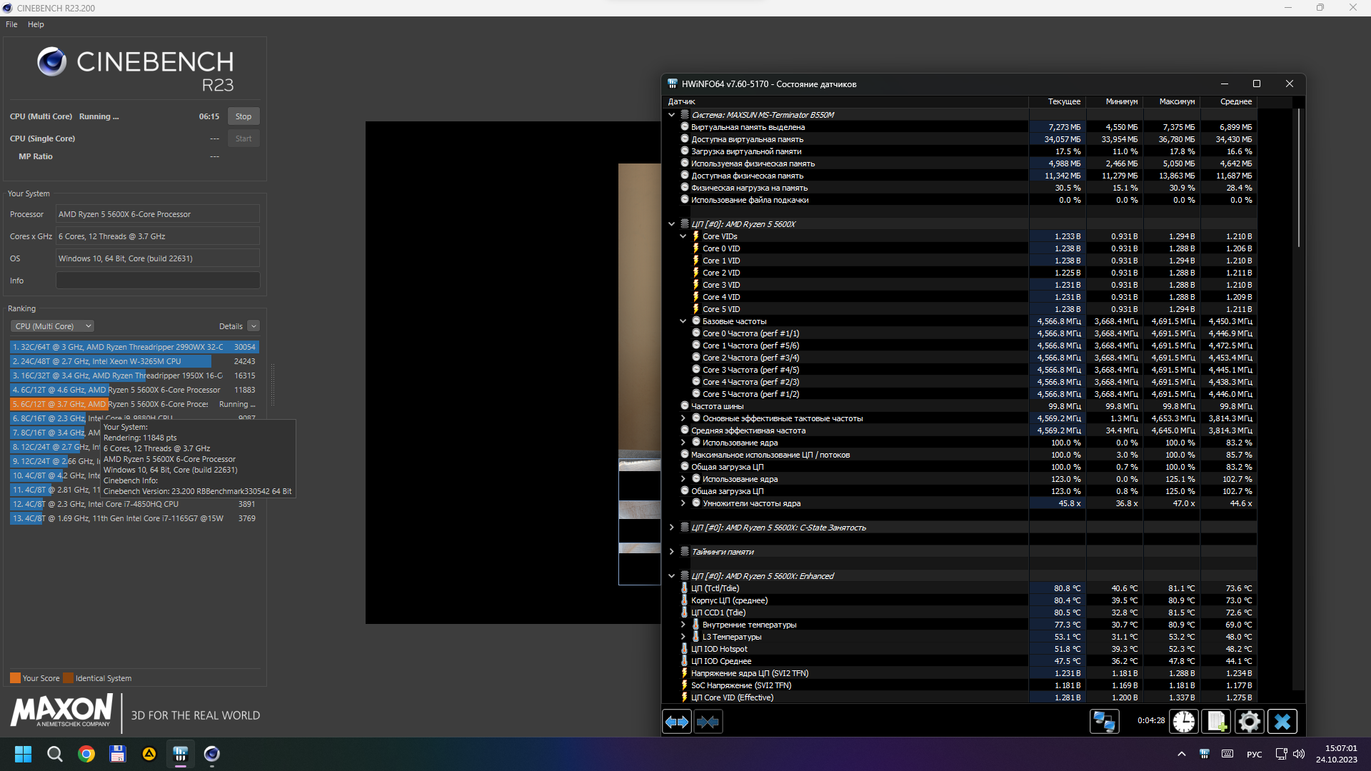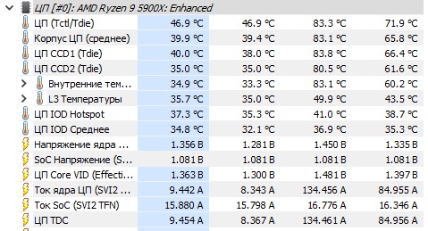 Третий столбик, это максимальное значение с момента запуска hwinfo, если интересуют напряжения при запущенном cinebench, то смотри первый столбик "Текущее" во время теста, а ещё лучше сюда смотреть