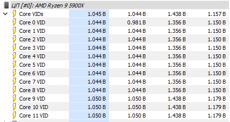 Какая разница. У меня в R23 результат как в бенче где 5600х на частоте 4.6 мгц, когда у меня он пашет в нем на 4.550вт в среднем. Вольтаж средний одинаковый как видим на скрине. Только core 0 не много проседает на фоне остальных. Это кстати быстрое ядро. Получается если следовать по гайду мне нужно вместо -30 на core 0 поставить где то -26 или -20 что бы выравнять вольтаж средний с остальными ядрами ?