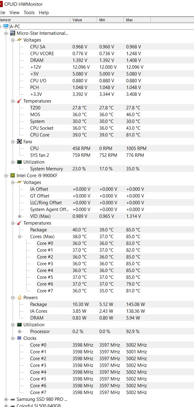ты вообще понимаешь как работает турбо буст на 9900k? у процессора есть несколько шагов буста, если какой-то софт грузит только 4-6 адер (не помню точно их число) то эта ядра бустятся до 4800мгц, если нагрузка на все 8 ядер то все ядра 4700мгц, если только на одно ядро то 5ггцц. в этом гикбенче целый ряд разных бенчей, и там явно процессор большинство времени грузится не на полную мощность а это значит что только нагружается только часть ядер а может и в каком-то замере только одно ядро.