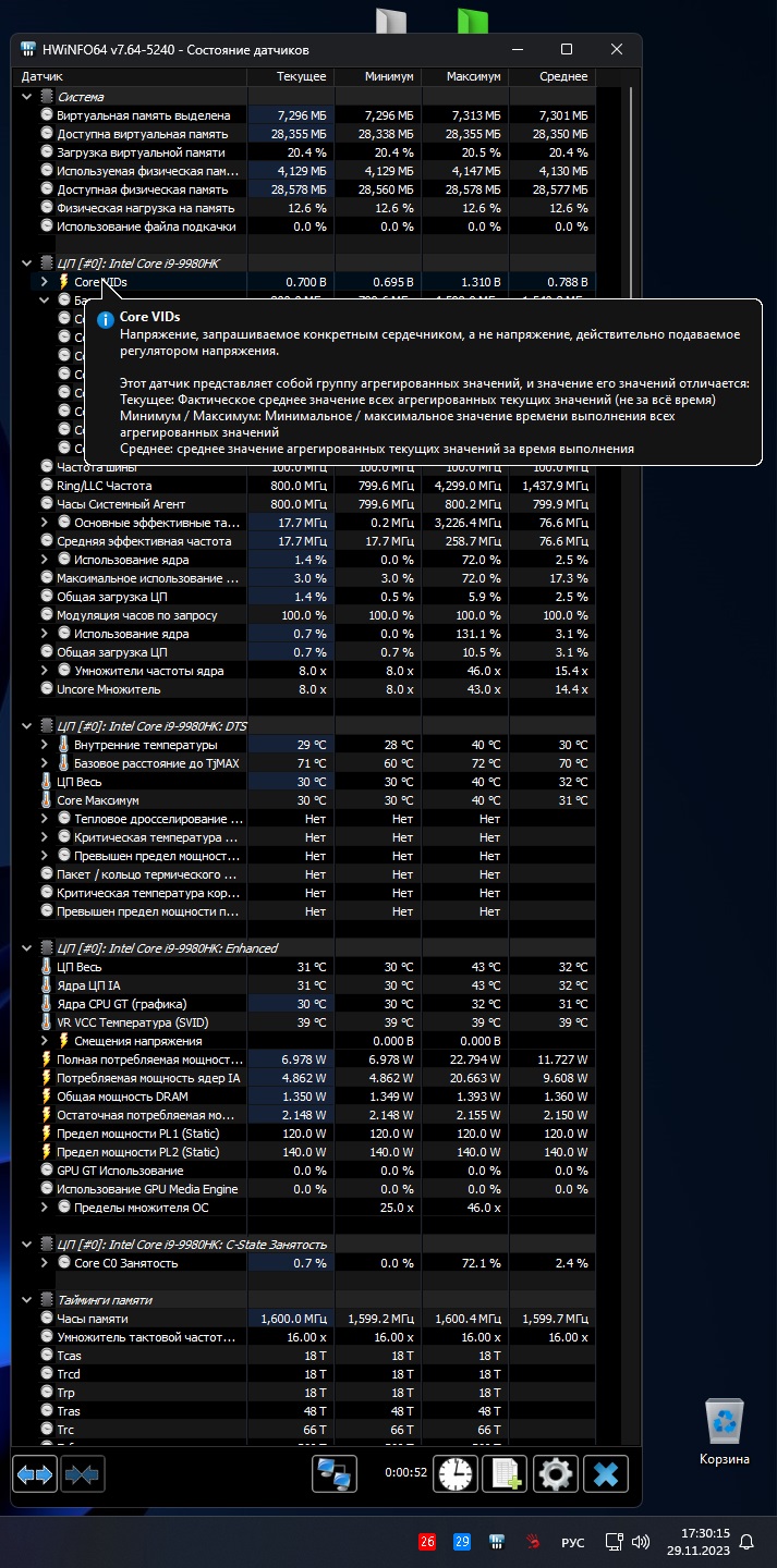 это раньше у меня была память 3600cl14. теперь она на райзене, только на нем уже никаких cl14 и близко нет. а сейчас 3866cl18-22-22-42 2t. и ты правда веришь, что под нагрузкой работает одно ядро на 5кококогерц серьезно?