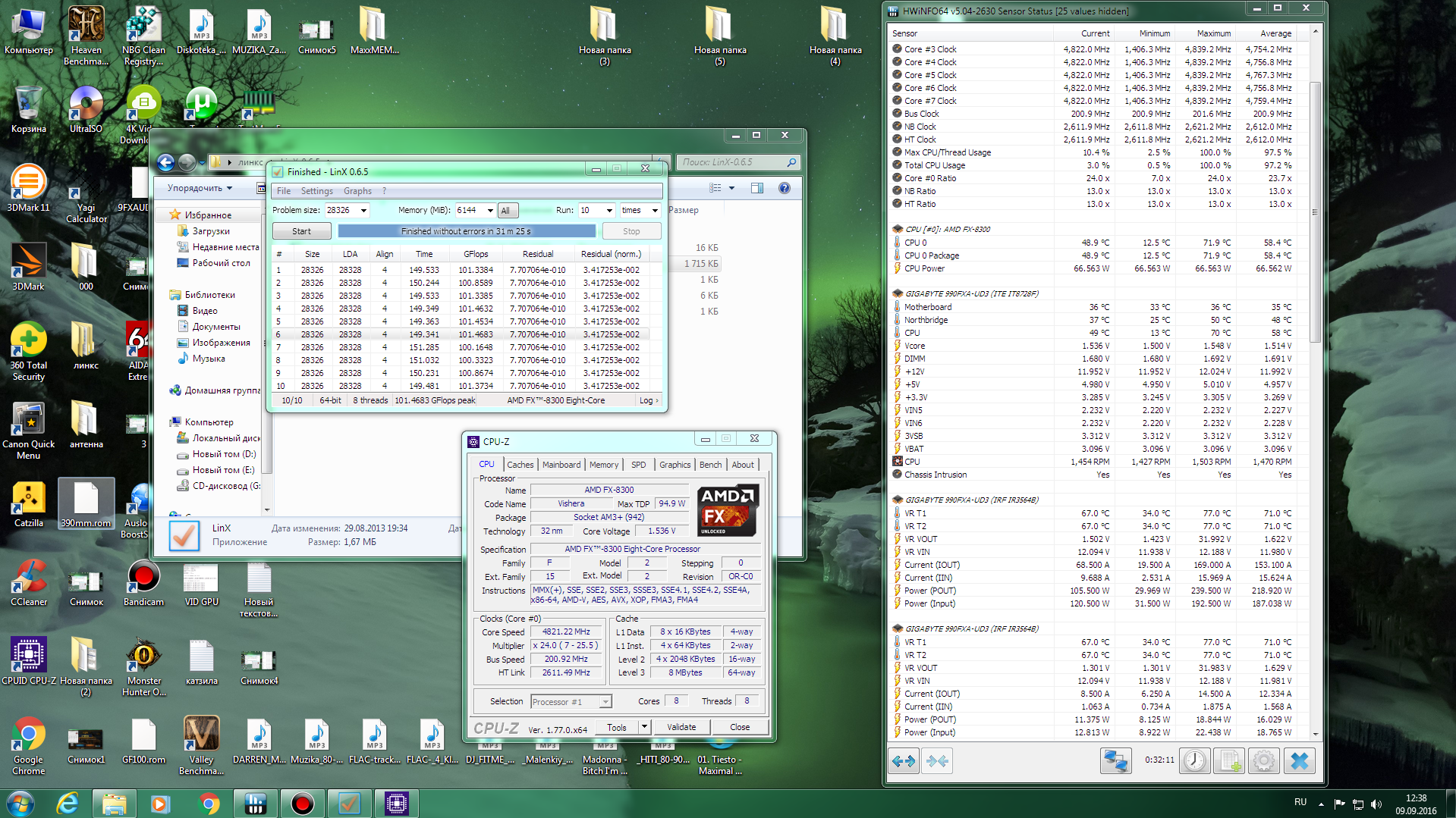обманул я тебя чуть ,видать всё таки блок питания и напряжение эл.сети влияет на производительность в линсе ,вчера при таких же условия гонял комп ,максимум отрабатывал только 10 минут (в сети не было 220 вольт ) а вот сей час есть ,комп прошел 10 тестов (30 минут) на 4.8/2600/2133 (9-10-10 1T) с результатом 100-101 Гф PS:на материнке два конденсатора на выходе по фазе NB стоят 820 мкф 2.5 вольта вместо 560 мкф 6,3 вольта --------------- Цитрус не знаю внесёшь не внесёшь таблицу но некоторые энергосберегайки работают а дальше всё как надо -------------------- ffa1978 ты же по моему хотел увидеть Гигу на 4.8 в линксе ,смотри