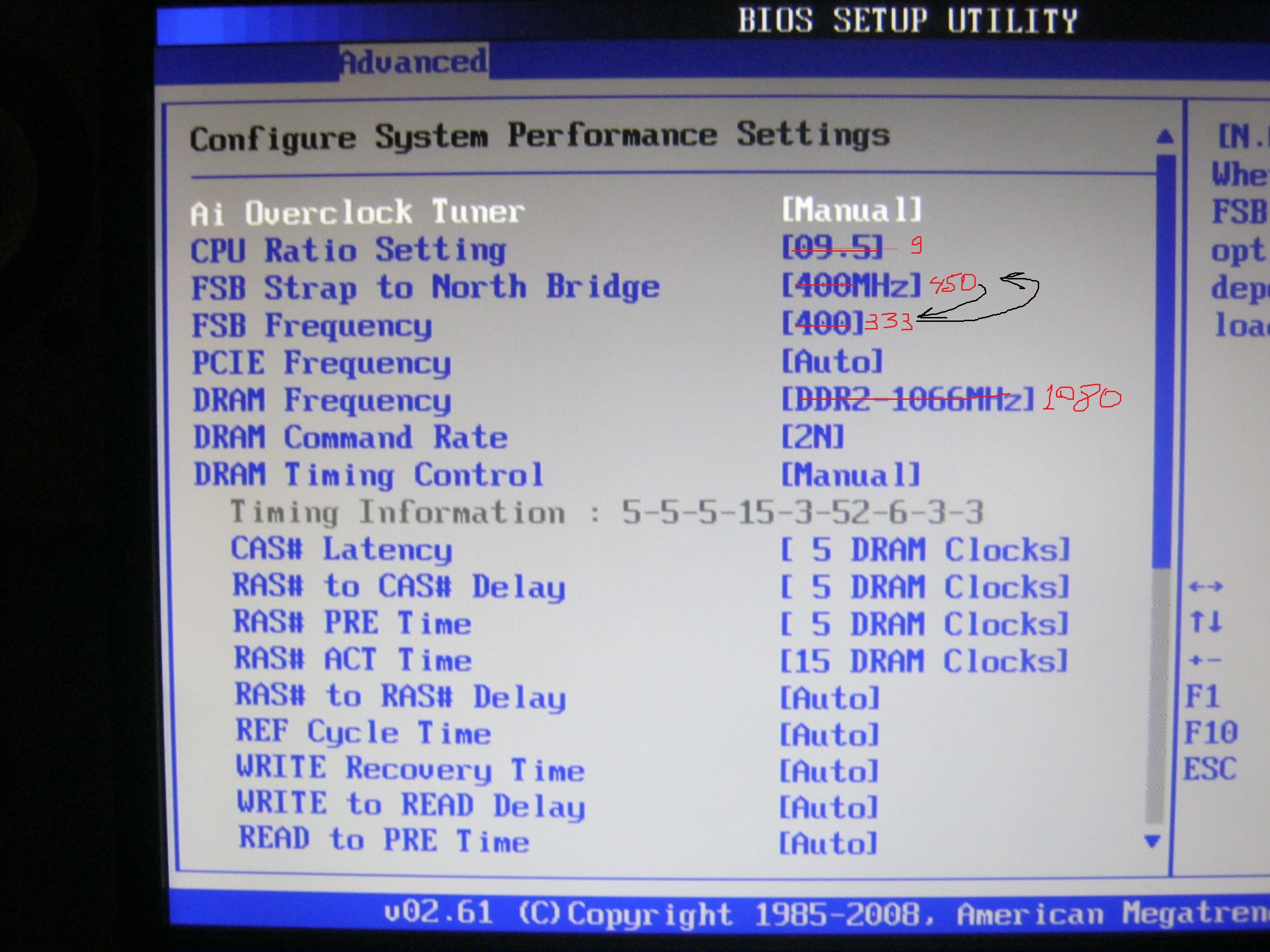 Хотя бы до стабильных 3400-3500 поднять. на скринах, там особо не смотрите, там метод тыка. это для понимания что есть в биосе. Хотя при таких настроеньках Виндоувс завелся. правда в тесте на стабильность в аиде, все покраснело через минуту)))))) тут метод тыка не решает. Конфиг: ASUS P5K Intel Xeon X5460, SLBBA(E0) KHX 8500 D2K2/4G (2 по 2 гб.)