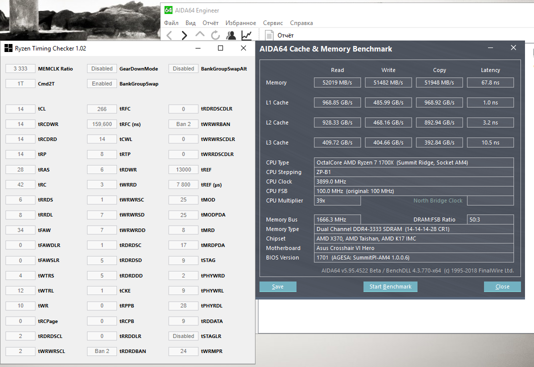 На подобных таймингах сама стабильность. латенси 70 что ли, уже не помню. Но если ставлю на все 14,15 или 16 - сразу же ошибки прут. Куда можно копать дальше, было бы идеально 3466МГц добить, но на этих таймингах зависоны еще на биосе.