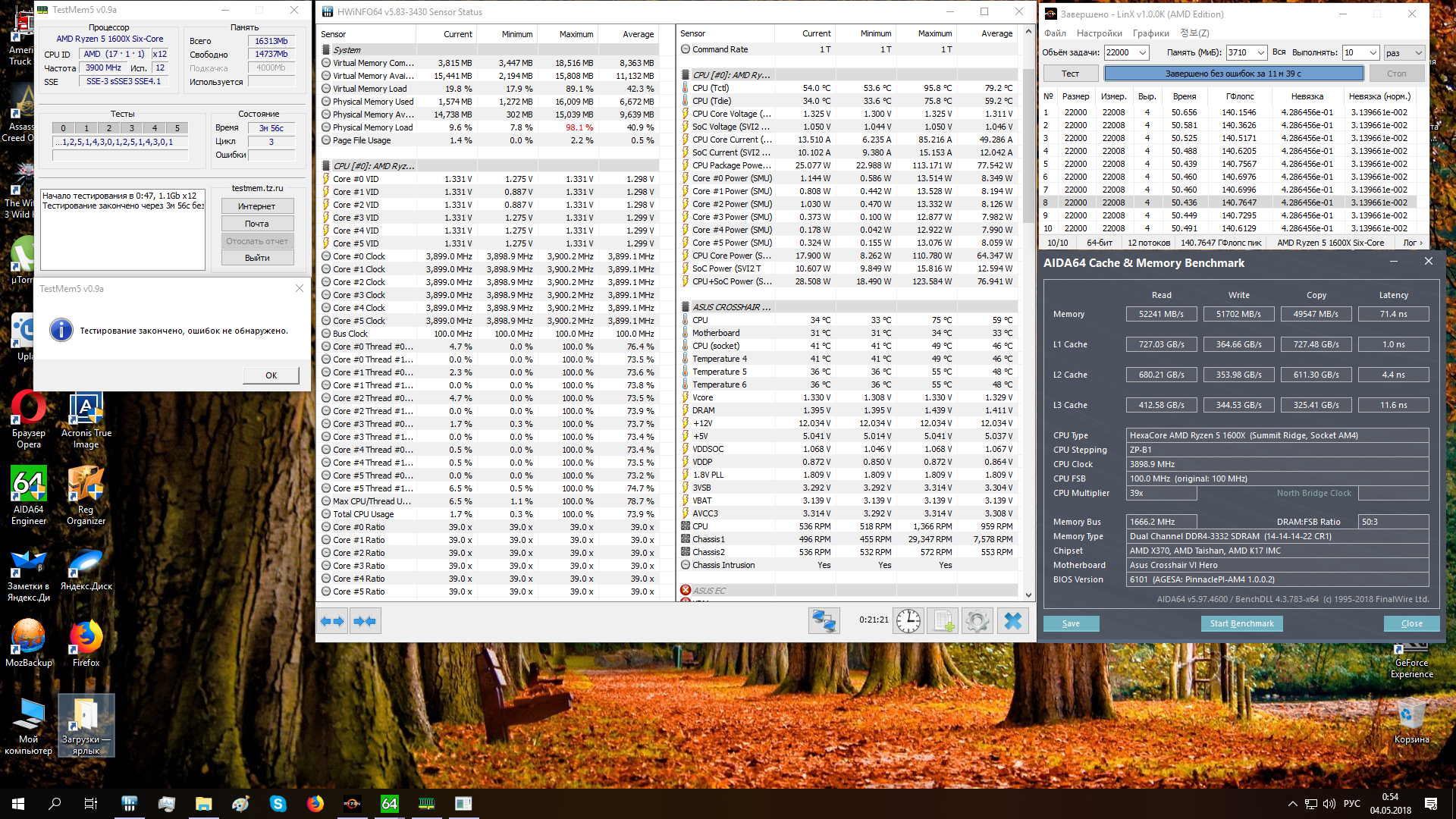 UPD. Забыл упомянуть. После вчерашнего опыта я решил все тесты стабильности делать в рабочей системе. Т.е. не отключаю фоновые программы как раньше. А отключал я порядка 30 программ и служб.