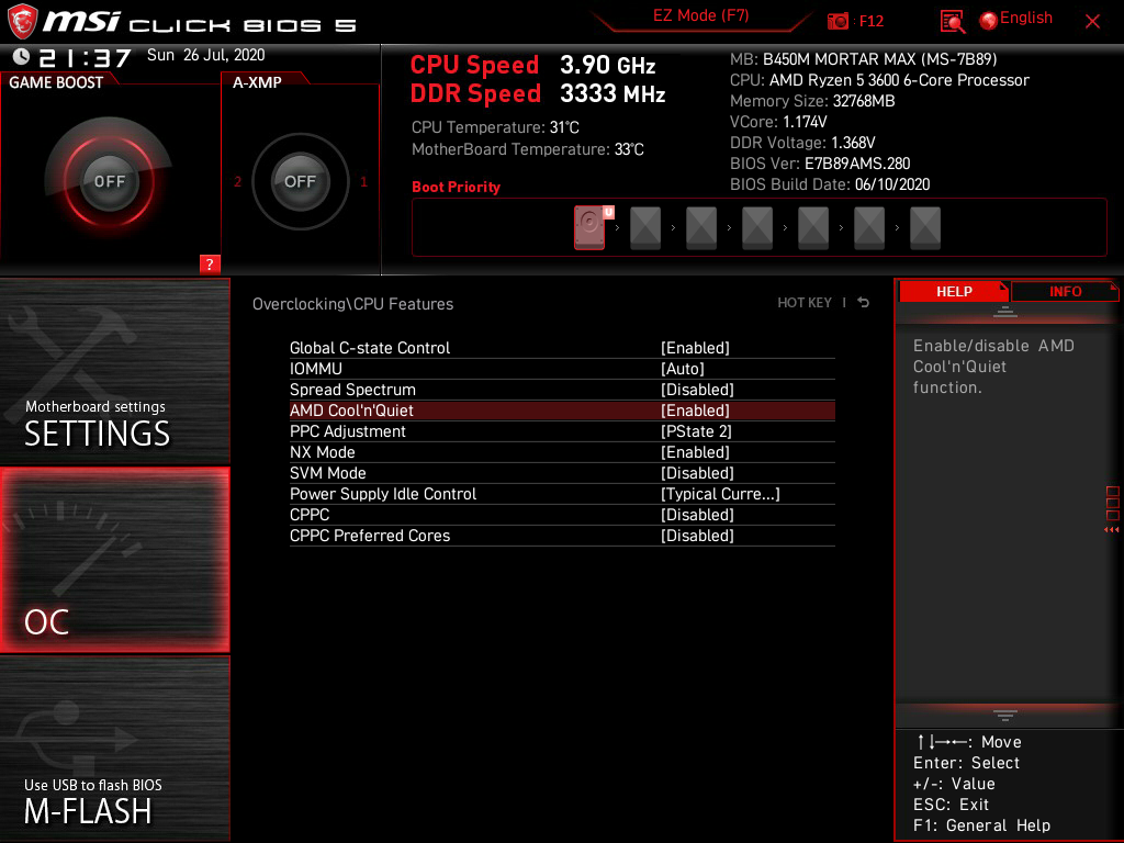 но как только я меняю параметры(любой из) C-state, Cool’n’Quiet (PPC A похоже не влияет), CPPC, CPPC PC - получаю постоянную долбежку Current