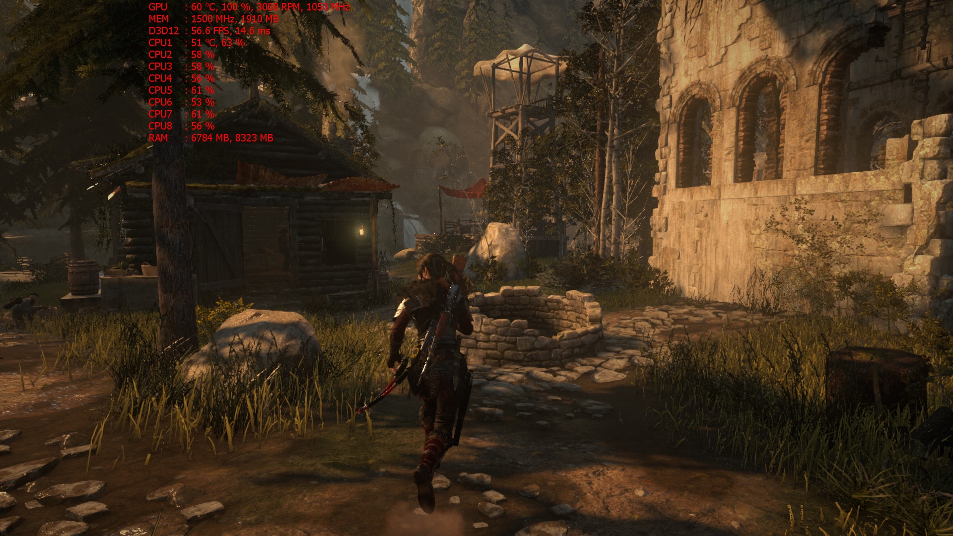Прошел вообщем ларку все на ультра по полной программе с 1070, вообщем бенчмарк встроенный хоть и пытался показать основные различия, но это явно не идеальный показатель картины по ФПС, потому что в самой игре есть более жесткие места. Самое жесткое место для проца было в поселении горных жителей, среди травки и деревьев.