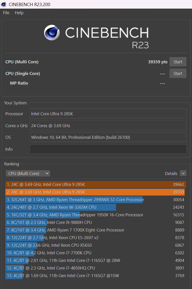 По дефолту, на асус профиле. Лимиты не ставил. 250w +- пишет осст Заметил еще вот что, чтобы я не запускал на одно ядро, я ни разу не видел частоту выше 5400, в синебенче 23 сингл 2400 выдает, но все равно выше 5400 частоты не было в прогоне. В спидометре тоже, а где же 5.7 на одно ядро?