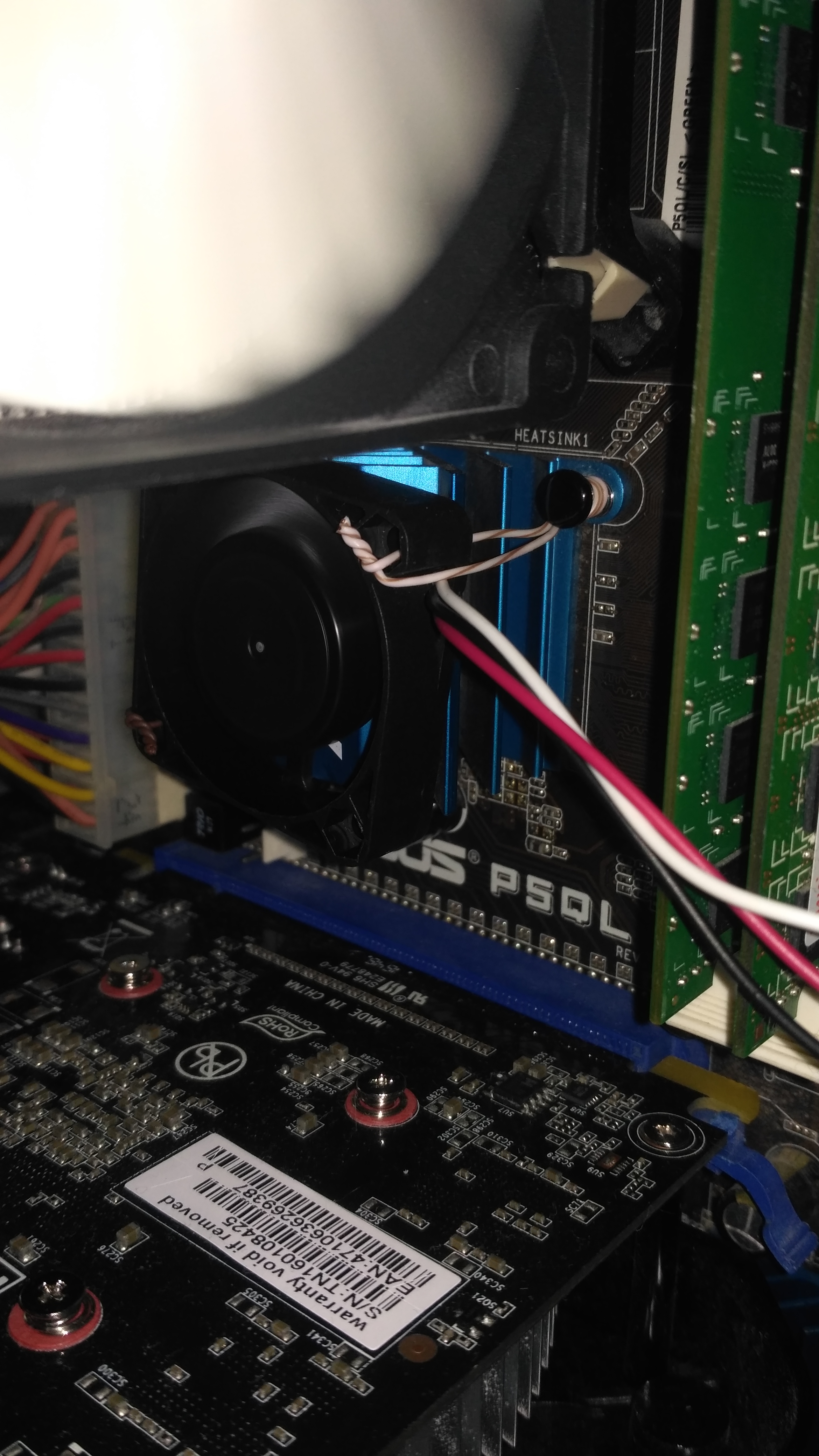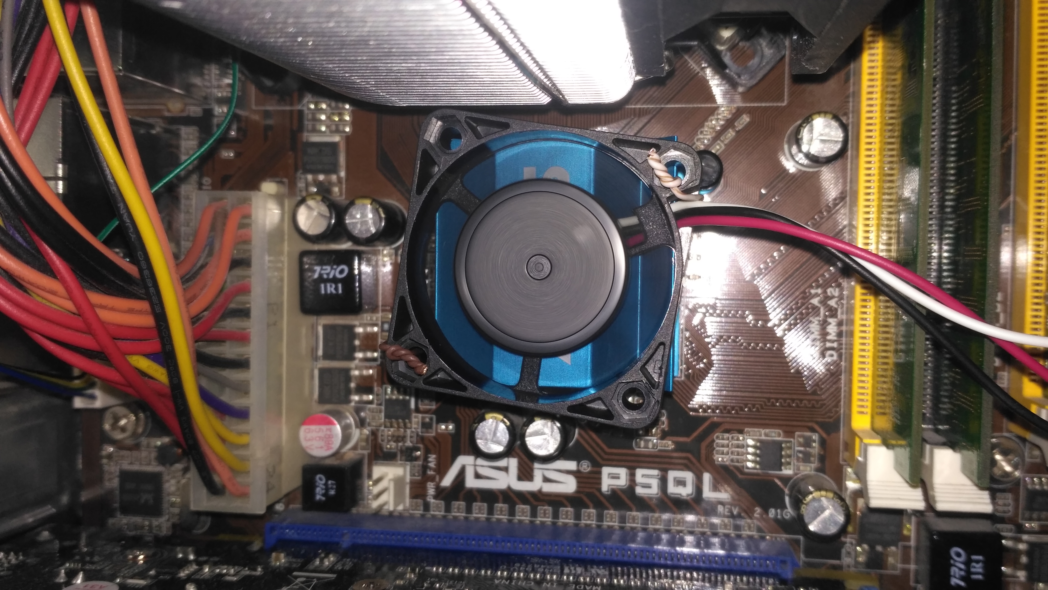 Цена 50р. Подключил в molex на 5в (на 12в он начинает немного вибрировать). Выше 75°С не поднимается. Без куллера температура по MHCtemp доходила до 93°С (напряжение на северном мосту 1,3В)