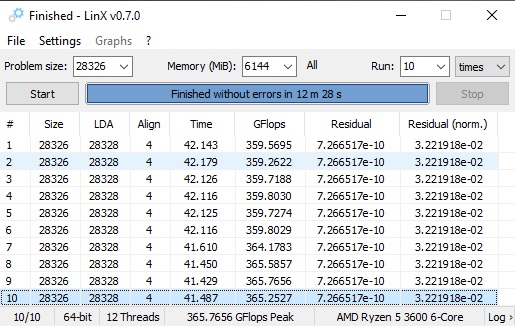 У меня сейчас 4.2 на 1,15в, тест синебенча норм 3 раза подряд, а linx как сильно прогонять? сколько задач ставить, какую память ставить и сколько раз (эти 3 параметра в самой проге) ?