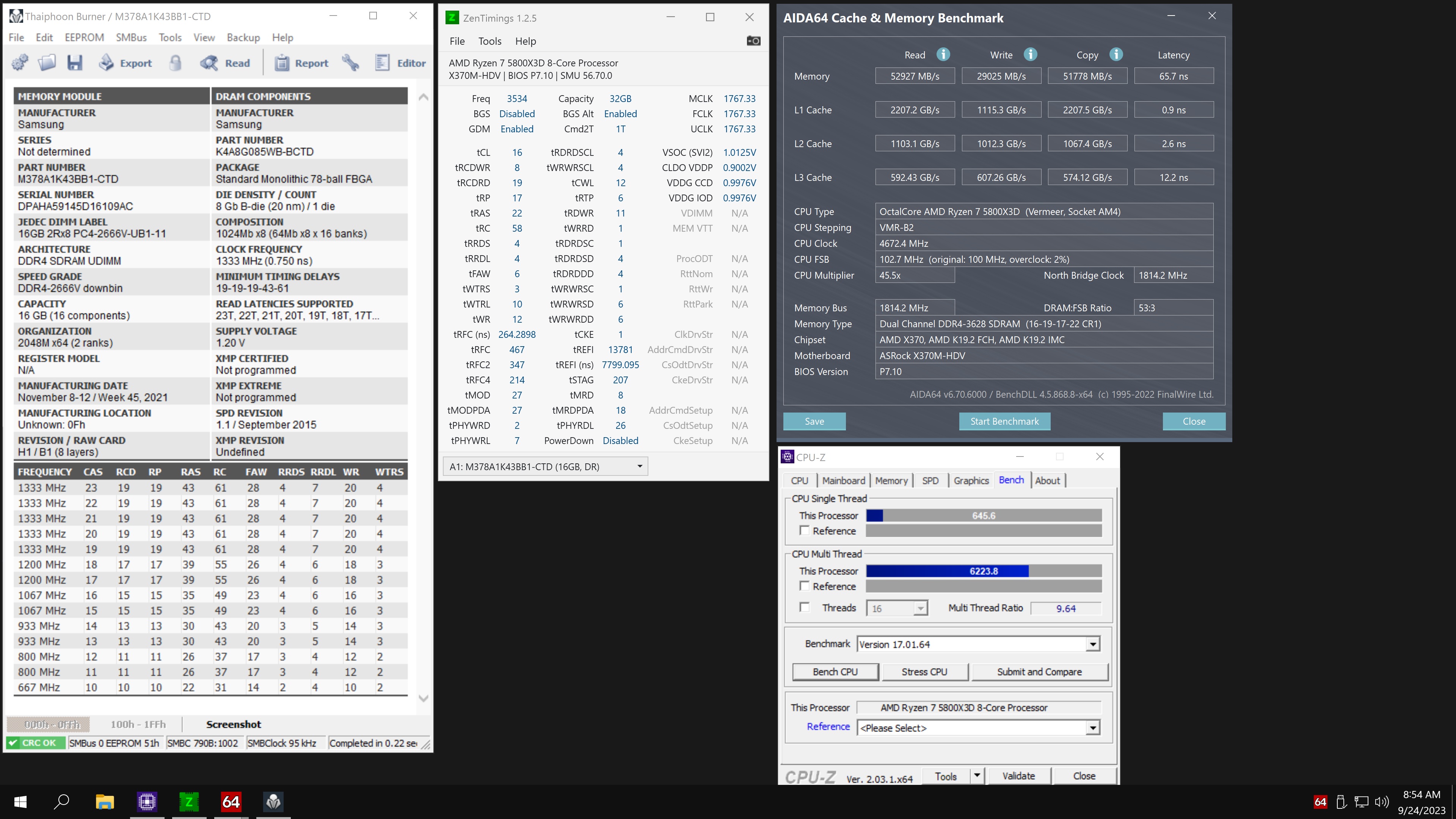 Потом на ютубе начали выходить видосы умирающих 5800X3d от того, что кривые материнки при старте накидывают вольтаж 1,55v и медленно убивают, так как 3d кэша чувствительна к напряжениям выше 1,35v https://www.youtube.com/watch?v=sKyjs49oDsE&t=0s Так что зря вы взяли 5700X3D для b450, я просто скинул свой комплект и от греха подальше взял самую жирную и топовую мать на AM4 - ASUS ROG Strix X570-I Gaming (8к рупий). И она шиной почему-то не гонит проц, но в простое теперь 18ватт, а максимальное потребление 110ватт (144 было на x370m), но память 16gbх2 2666cl23 samsung b-die поехала 3733cl18 1.32v (на x370m она же не хотела выше 3533cl16). Ну и за vrm теперь можно не переживать и вдобавок получил 2 слота m2 gen4 и переехал в mini-ITX корпус. На счет охлаждения 5700X3D -нужно ставить воду 240мм, башни не прокатят, потому что из-за 3D каши даже в играх с фулл оборотами есть мгновенные скачки до 90 градусов (пробовал с прямым контактом трубок и без - просто не успевают отводить + еще видеокарта RTX 3080 спокойно может на ровном месте подогреть башню до 70-80градусов) и просто жалко процессор. У самого сейчас вода 240мм и минимальные обороты 840 - скачки теперь до 60 и медленный нагрев до 83 и всё, дальше не ползет в стресстестах, а в играх 50-60 максимум. Ну и тест кибербага v2.1 с 2666cl23 сток