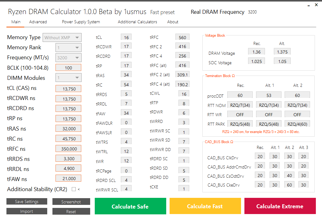 DemAlex Версию калькулятора видите? Это другая версия, она по-другому работала. В новой версии есть r-xmp в которой записаны задержки для каждого типа памяти(ну не для каждого, программа еще в стадии разработки). Но калькулятор стоит рассматривать как ориентир. Сложно учесть все случаи