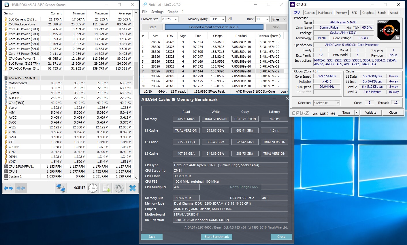 - Обычно поставляется в коробке с системой охлаждения Wraith Spire RGB (это круглая конструкция из целого куска алюминия с медной вставкой-испарительной камерой в основании и вентилятором с кольцом разноцветной подсветки, крепится к задней пластине разъёма AM4 четырьмя винтами). - Штатно имеет базовую частоту 3.0ГГц, частоту 3.2ГГц (технология Turbo Boost) при обычной многопоточной нагрузке (Blender n-cores render) и 3.75ГГц (технологии Precision Boost и XFR) при однопоточной нагрузке (Cinebench R15 single core). - Штатное напряжение питания 1.1875В. Может возрастать до 1.3В на отдельных ядрах во время работы Precision Boost и XFR. - Очень энергоэффективный, требования к СО (TDP) - всего 65W. Энергопотребление порядка 10Вт в простое и 85Вт в обычной многопоточной нагрузке (Blender n-cores render).