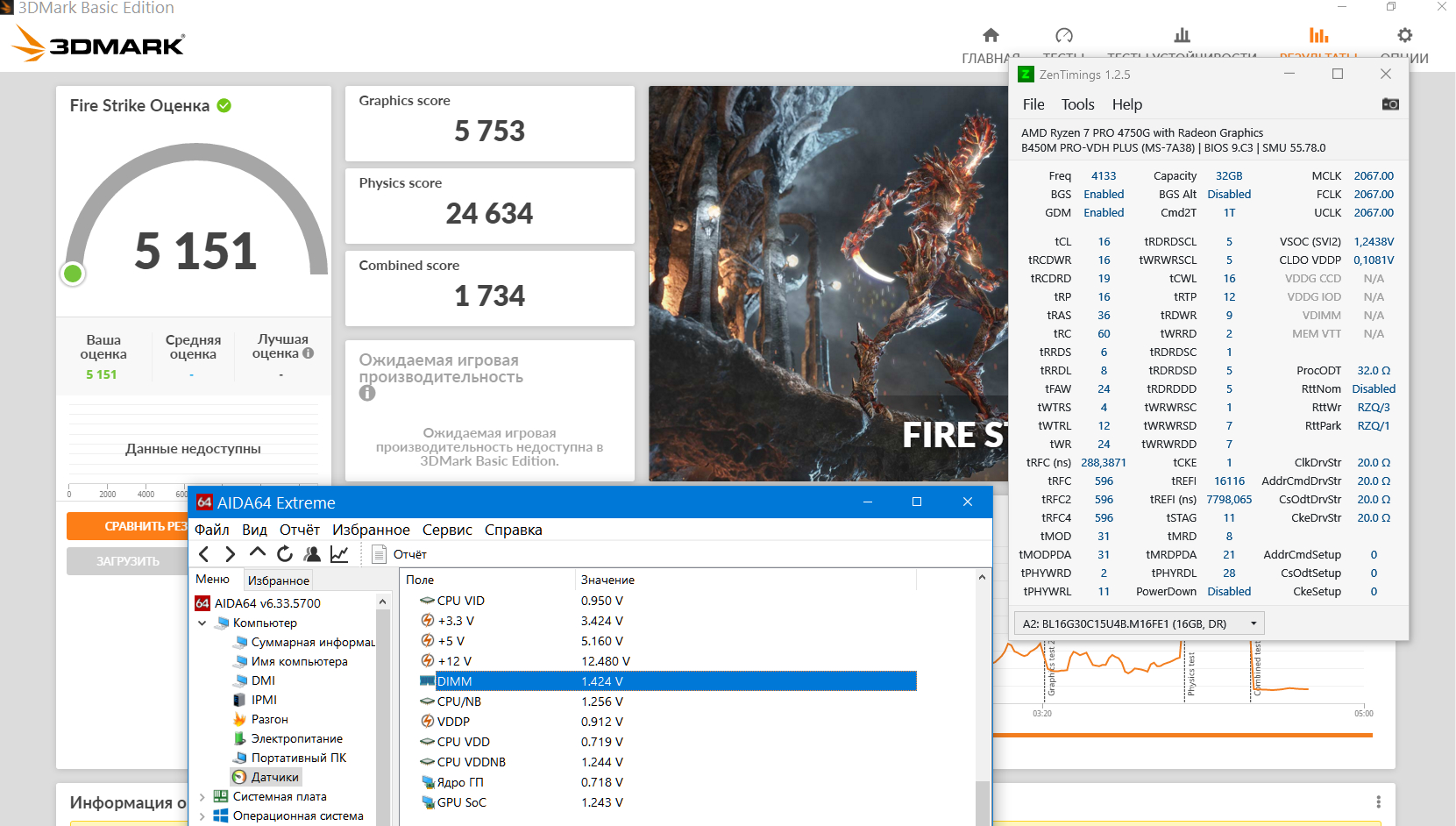 fire strike 4750g cpu оfset -0.125, ram 4133 igpu 2400