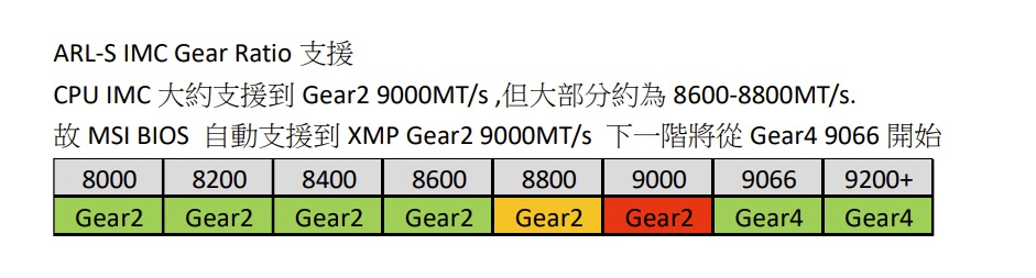 Ну эта табличка нарисована по результатам разгона одного процессора, как я понимаю. Т.е. с трудом, но 9000 на gear 2 взяли. 9066 потребовал gear 4. Чтобы вся эта фигня с задержками от режима cudimm и gear 4 отыгралась в плюс, частота должна быть за 10 или даже 11к. Стоить такие модули будут как крыло самолета поначалу.