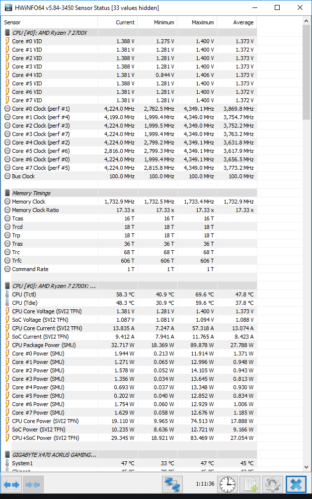 [2018/07/01 19:02:32] Ai Overclock Tuner [Manual] eCLK Mode [Synchronous mode] BCLK Frequency [100.0000] BCLK_Divider [Auto] Performance Enhancer [Level 3 (OC)] CPU Core Ratio [Auto] Performance Bias [CB15] Memory Frequency [DDR4-3466MHz] Core Performance Boost [Enabled] SMT Mode [Auto]