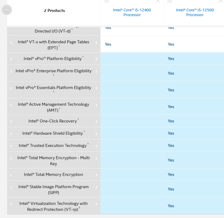 Подскажите пожалуйста чем отличаются 12400 от 12500 (кроме графического ядра и частот)? Делал на сайте Интела сравнение, у 12500 поддержка инструкций. Насколько это критично?