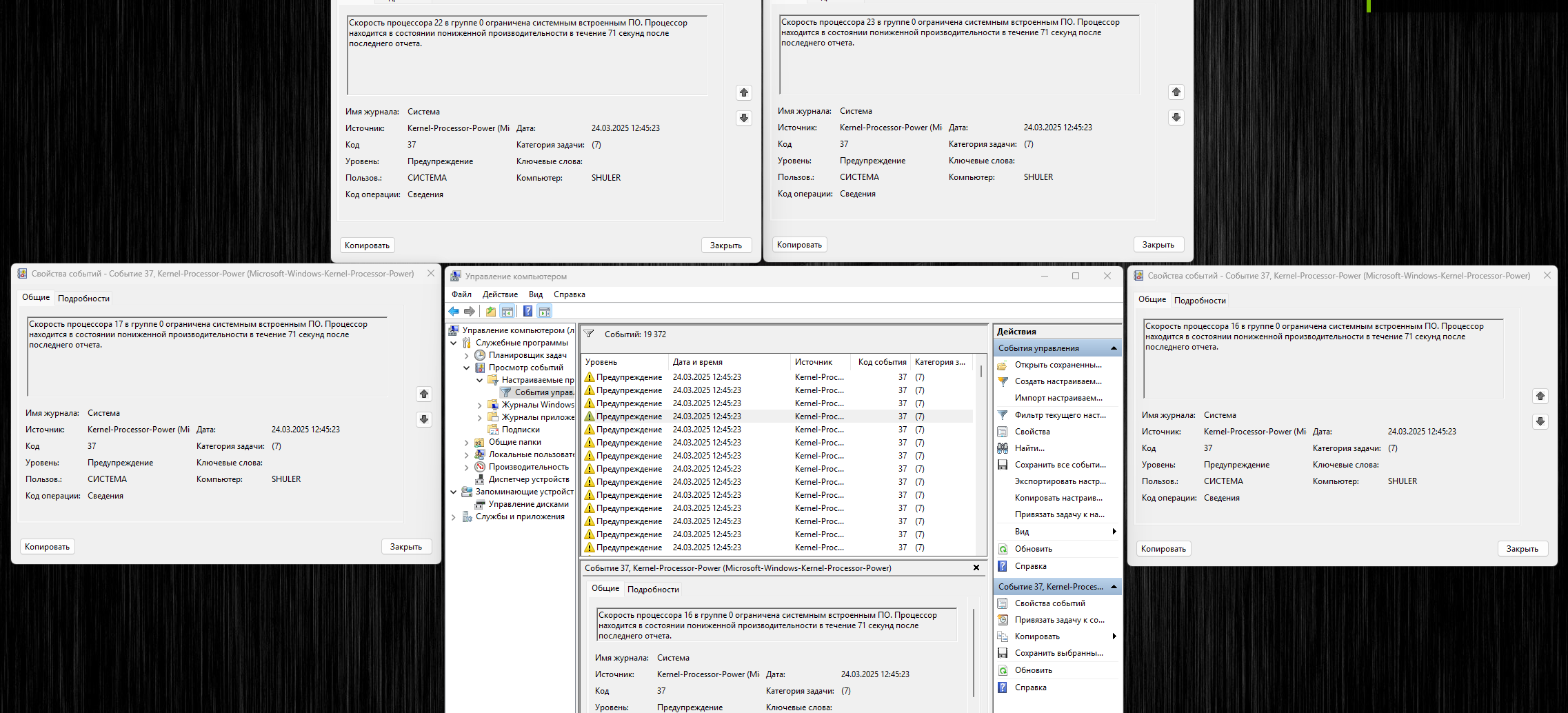 По времени произошло строго сразу после включения, как только произошла инициализация. Т.е при входе в систему. И более не повторялось. Хотя может быть виноват новый DTT драйвер. Либо при его загрузке система хрень пишет. Да, похоже это всё таки DTT, как раз началось по датам журнала, именно после установки мной нового драйвера. В самой системе и бенчмарках, производительность не упала. Видимо косяк винды + нового DTT.