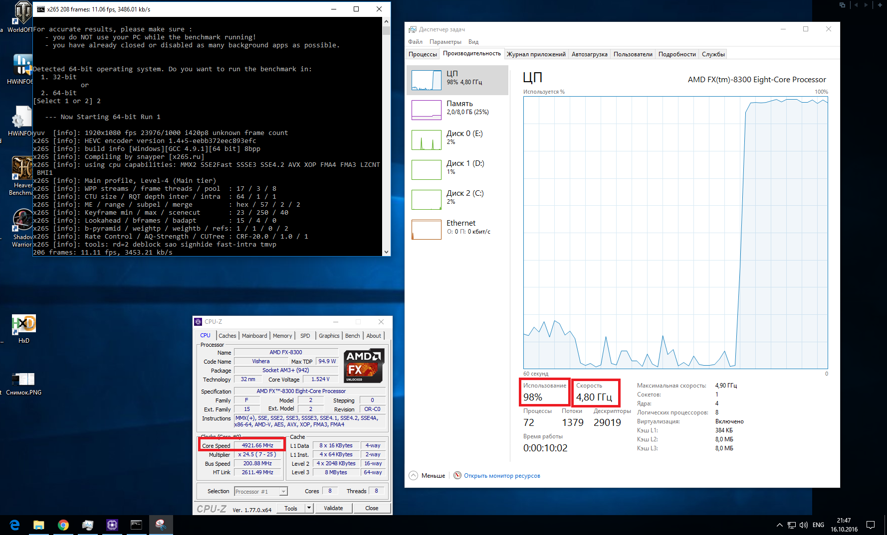 Ну правильно дутый линпак на 4800, поэтому х265 лишь на тех же 4800 и со скрежетом пройден. А был бы линпак не дутый, он бы и 4900-5000 пробежал в х265.