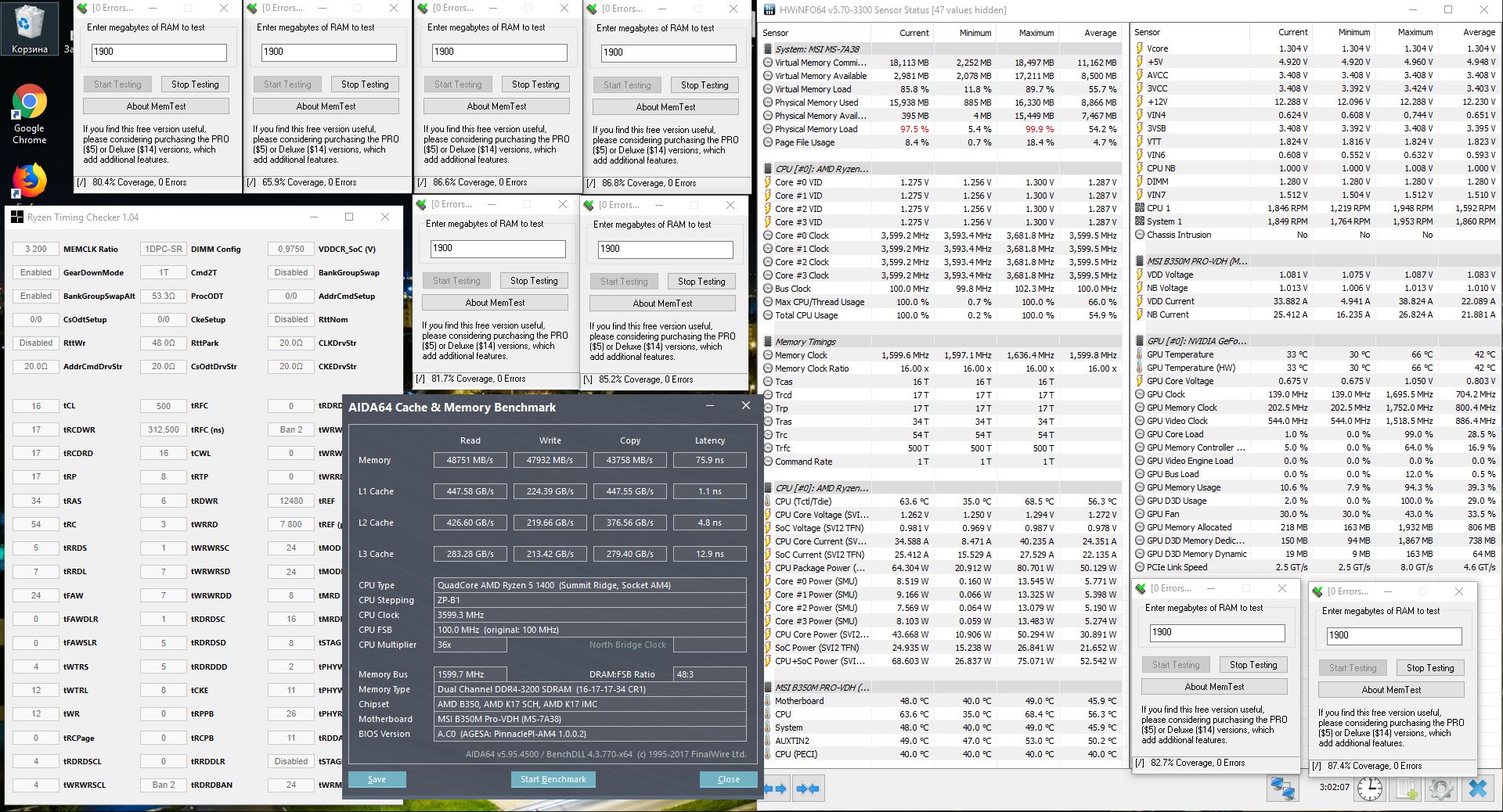 я то же ее запускал на 3466 (тайминги 20 или 22), но ТМ5 сразу же сыпал ошибками. И я понял что моя плата не умеет выше 3200 (как и заявлено в спецификации на МП). У вас МП конечно топ на чипсете B350.