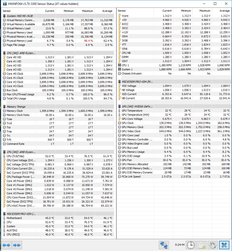 проверил, так и есть при, при напряжении 1.3125V 3.7ГГЦ невязок нет, температура 77max.