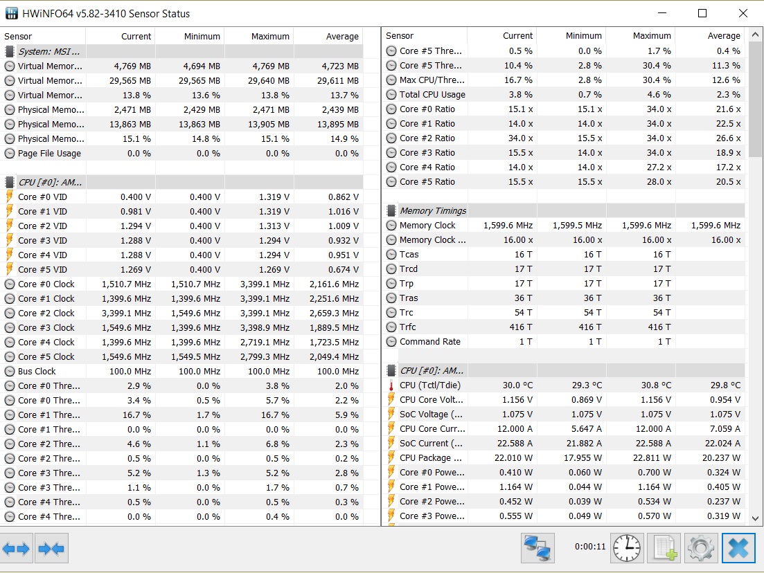 - Обычно поставляется в коробке с системой охлаждения Wraith Spire RGB (это круглая конструкция из целого куска алюминия с медной вставкой-испарительной камерой в основании и вентилятором с кольцом разноцветной подсветки, крепится к задней пластине разъёма AM4 четырьмя винтами). - Штатно имеет базовую частоту 3.0ГГц, частоту 3.2ГГц (технология Turbo Boost) при обычной многопоточной нагрузке (Blender n-cores render) и 3.75ГГц (технологии Precision Boost и XFR) при однопоточной нагрузке (Cinebench R15 single core). - Штатное напряжение питания 1.1875В. Может возрастать до 1.3В на отдельных ядрах во время работы Precision Boost и XFR. - Очень энергоэффективный, требования к СО (TDP) - всего 65W. Энергопотребление порядка 10Вт в простое и 85Вт в обычной многопоточной нагрузке (Blender n-cores render).