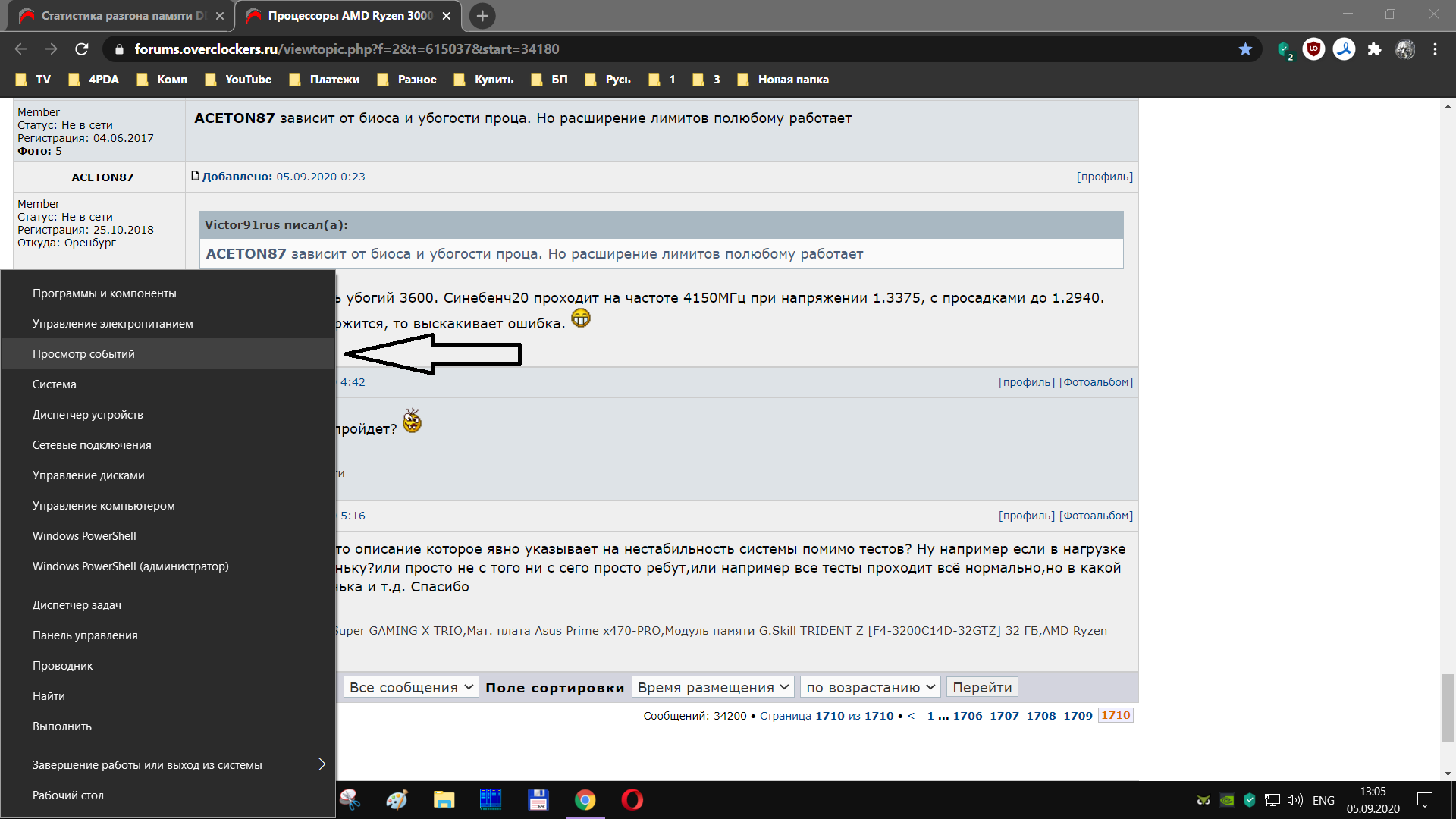 У меня походу очень убогий 3600. Синебенч20 проходит на частоте 4150МГц при напряжении 1.3375, с просадками до 1.2940. Если просадка задержится, то выскакивает ошибка.