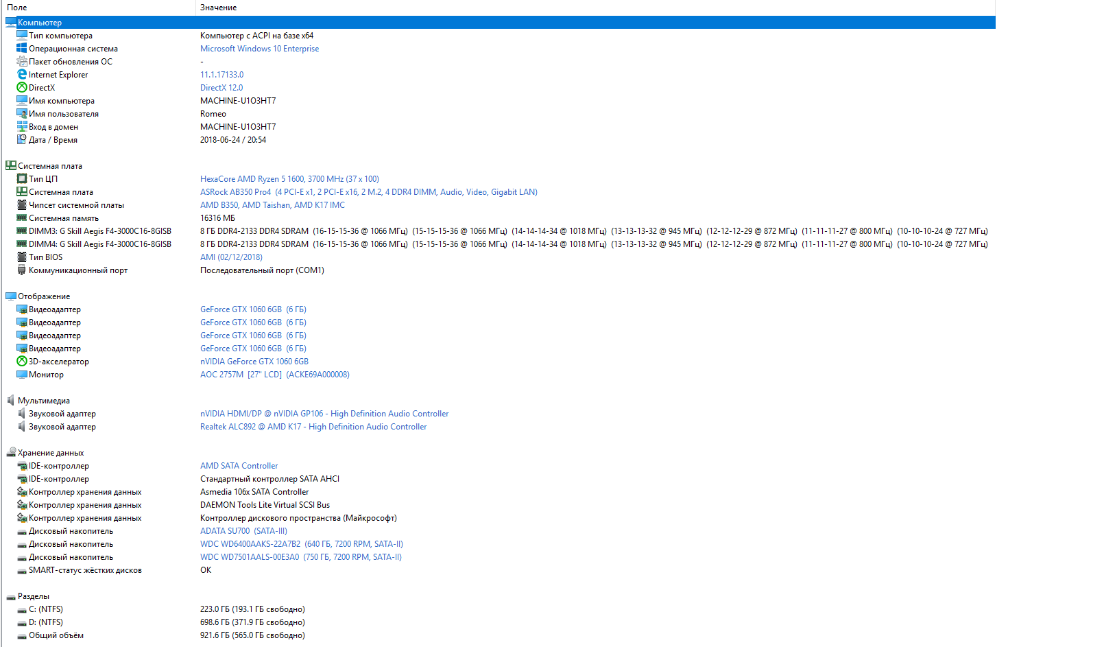 Привет форумчане. В общем небольшая проблема возникла которая раздражает невероятно. Недавно приобрел новый комп, характеристики в приложенном фото, так вот проблема следующая - время от времени на компе возникают затормозы, неважно, игра это или работа в винде, ютуб. Как бы обьяснить, что за затормозы - вы когда нибудь слышали, какой звук издает комп в колонках во время поломки какой то комплектующей? Это такой треск, гул. Так вот у меня тоже выдает такой звук, в течение буквально пол секунды, на работу это не влияет, комп после этого продолжает прекрасно работать, но как я понимаю, такого быть не должно, это точно. Проявляется такая ерунда очень рандомно - бывает пару раз за час, бывает не видно целый день. Из компа у меня разогнана только память, до 3200, с таймингами 16-18-18-38, но скажу сразу - до разгона памяти было то же самое, то есть эти глюки были и на компе в абсолютно стоковом состоянии(даже при частоте памяти 2133, пока еще не был включен хмп-профиль). Биос обновлен на последнюю версию с сайта производителя. Я делал в Аиде стресс тест, наверно часа пол, и никаких сбоев замечено не было. Перегрева нет точно, на всякий случай скинул скрин с показаниями датчиков в аиде, там все прекрасно. Я читал про фризы и статоры на райзене 1600, так вот хотел спросить - это они и есть или это тупо проблема железа и нужно обращаться в сервис? И что вообще можете сказать или посоветовать в моем случае? Забыл сказать - винду ставил несколько разных сборок десятки, разницы нет, семерку не пробовал ставить из за геммороя с установкой.